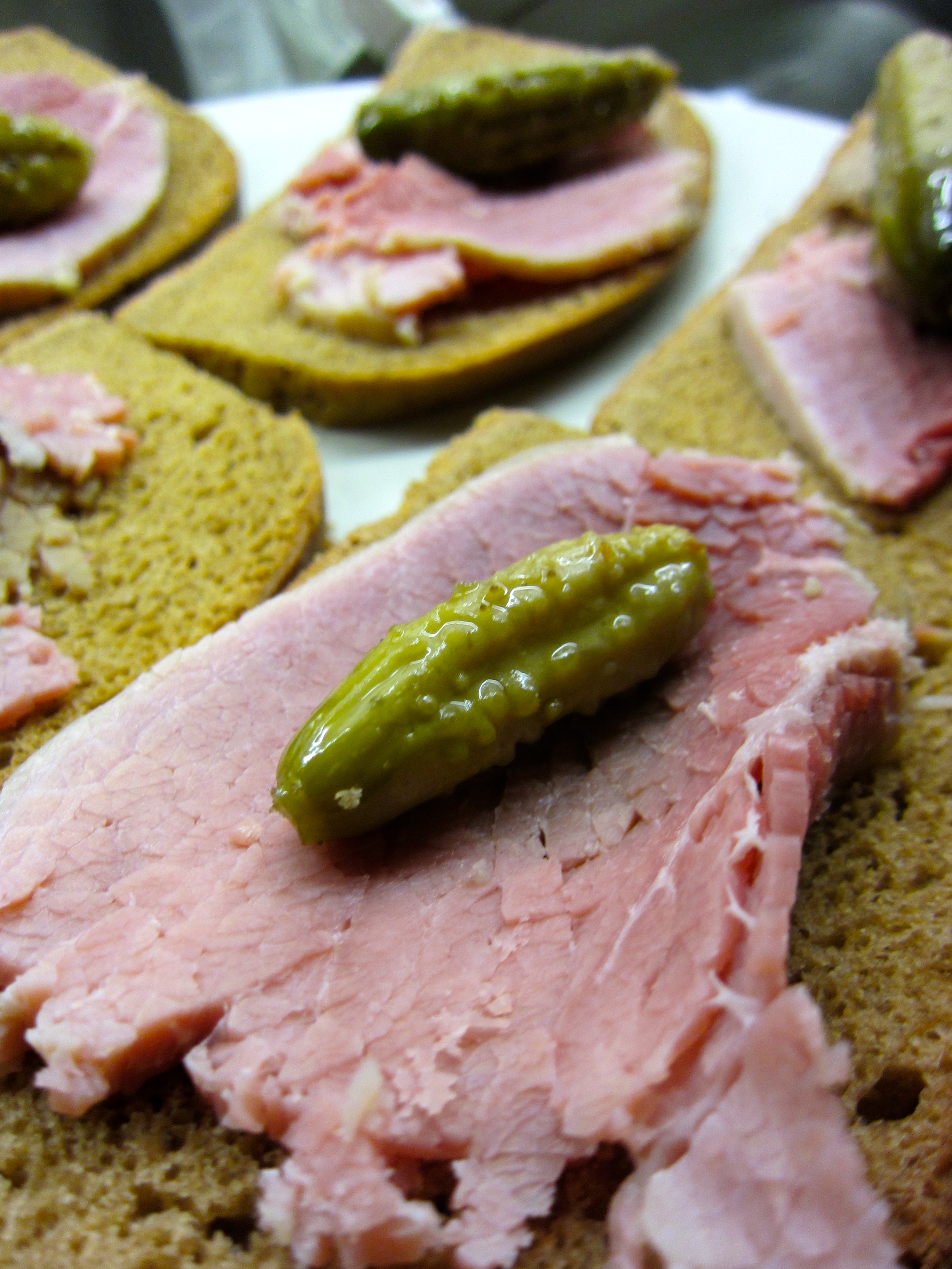 Söndagsfrukost med saltrulle och inlagd smågurkor