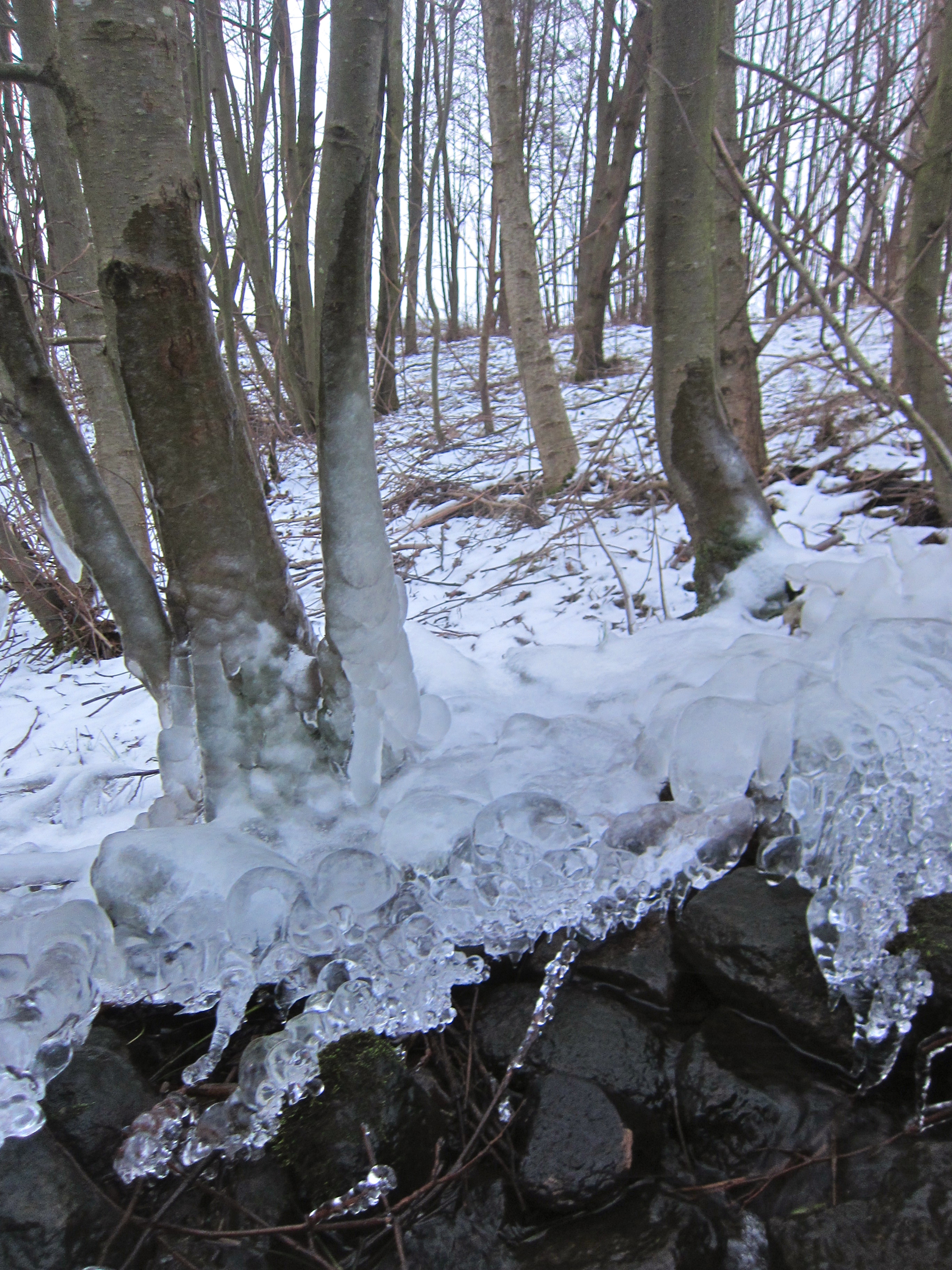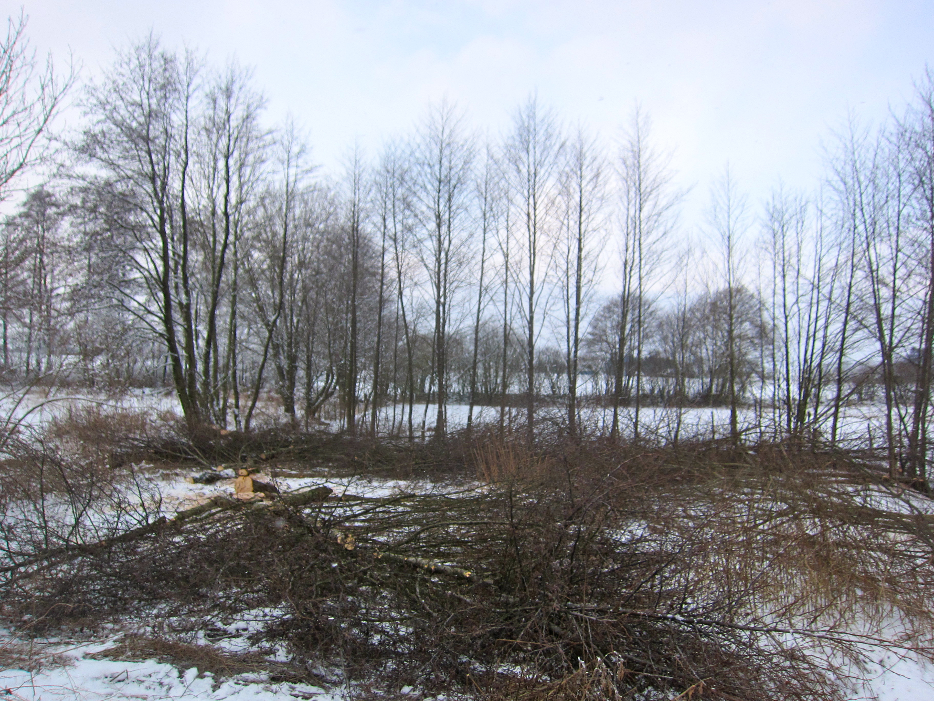 Härligt vinterväder för att ta fram motorsågen och komma igång med det nya getbetet som skall ligga vid våra kväve och fosfordammar. Efter att dammarna blev klara 2001 har det kommit upp en skog av Al. Alen trivs i fuktiga miljöer och är ett av de bästa träden att ha vid bäckar och dammar för att säkra upp kanten och skapa skugga som kyler ner vattnet vilket gör att mikroorganismerna trivs och är mer produktiva. Att vattnet beskuggas gör även att man minskar risken för algblommning som kan leda till akut syrebrist och döda många av de större djuren som fisk och kräftor.