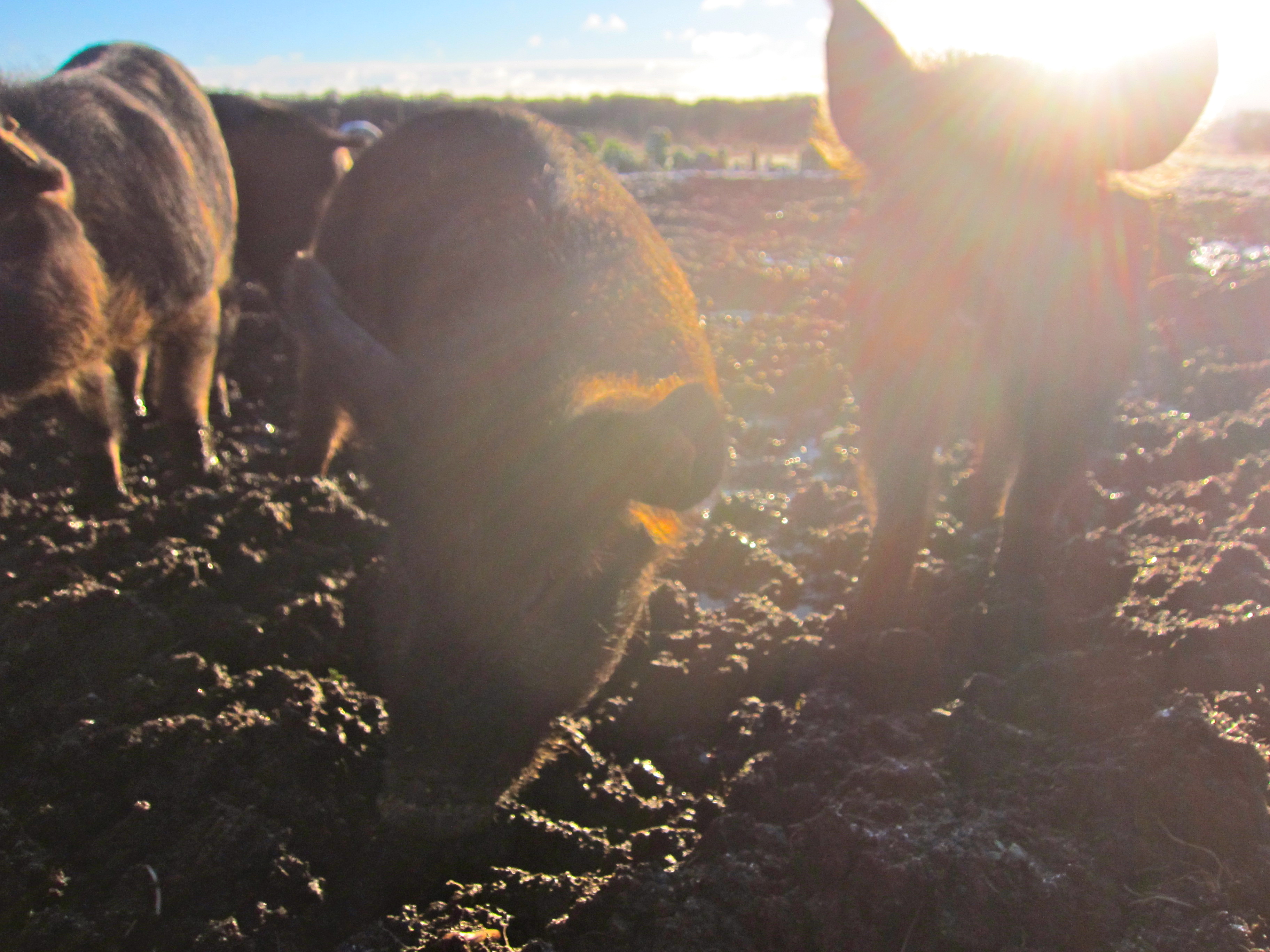 Matlagningen nu på vintern hämtar stor inspiration från vad man fortfarande kan hitta i trädgården, det största utbudet hittar vi hos kålfamiljen Grönkål och Rosenkål frodas även om kylan har knäckt en del av dom mindre plantorna, även några huvuden av Rödkål har klarat sig fram till i dag. Samtidigt som man skördar till köket får grisarna sin beskärda del i form av blad och stammar efterhand som vi har skördat av ett område får dom även komma in där för att böka.