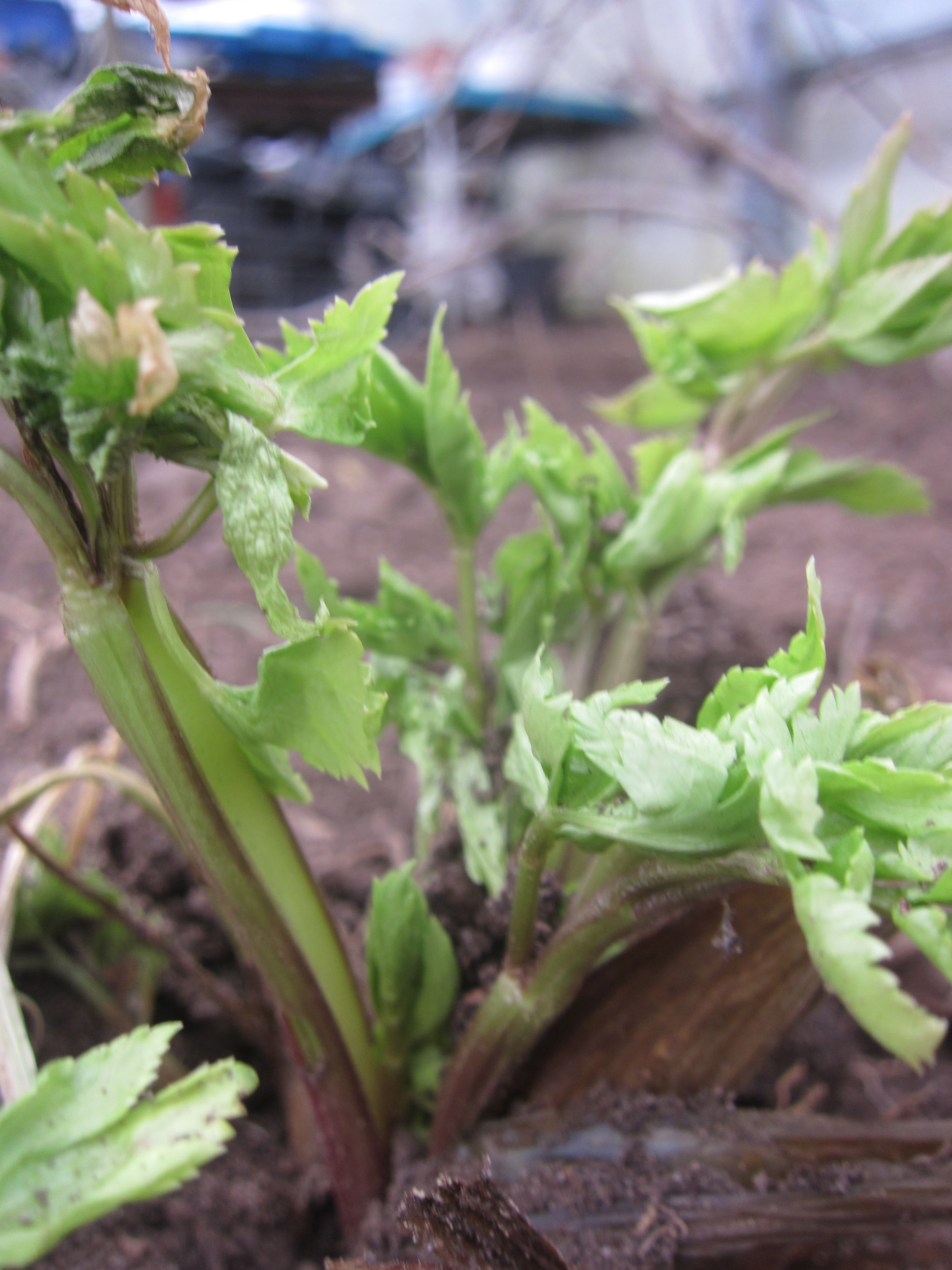 Både dom som har kommit längst och är snuddande nära att vara klara för skörd är det som vi har övervintrat där inne, vitlök selleri mangold och sallat.