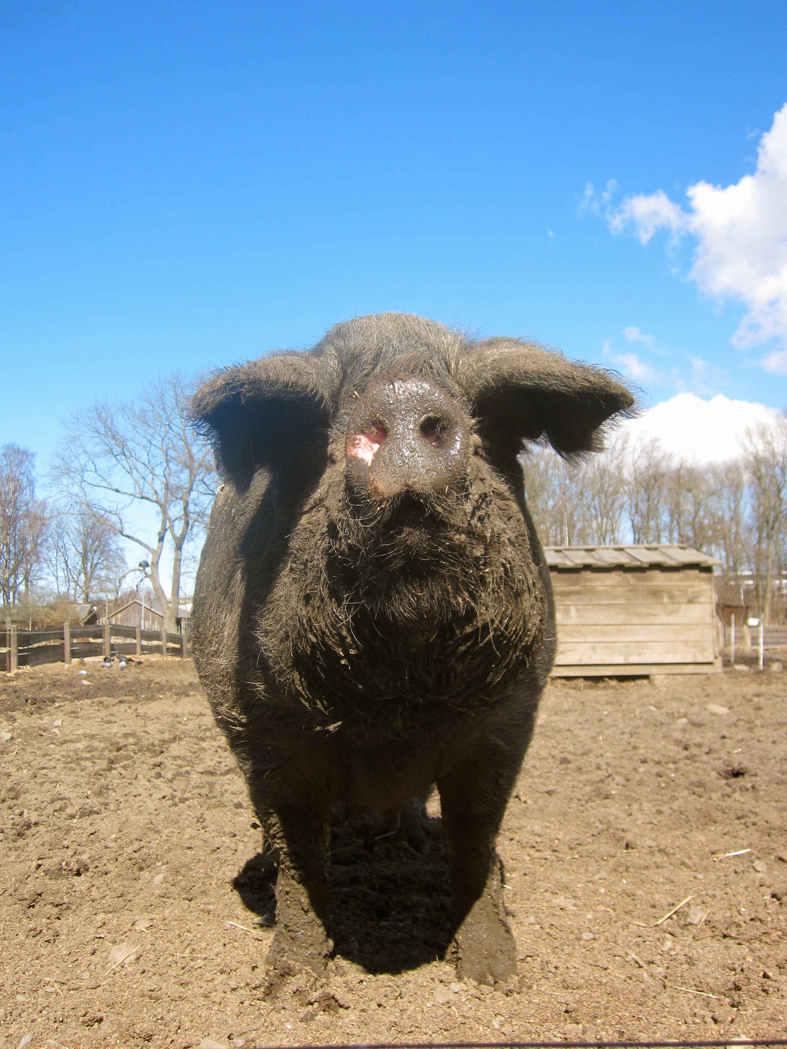 Betydligt tystare är det hos Linderödssvinen den stora suggan följer varje besökare nyfiket om det kan tänka sig att det är en skötare förklädd och som kommer med mat. Vägen till ett gris hjärta går via magen.