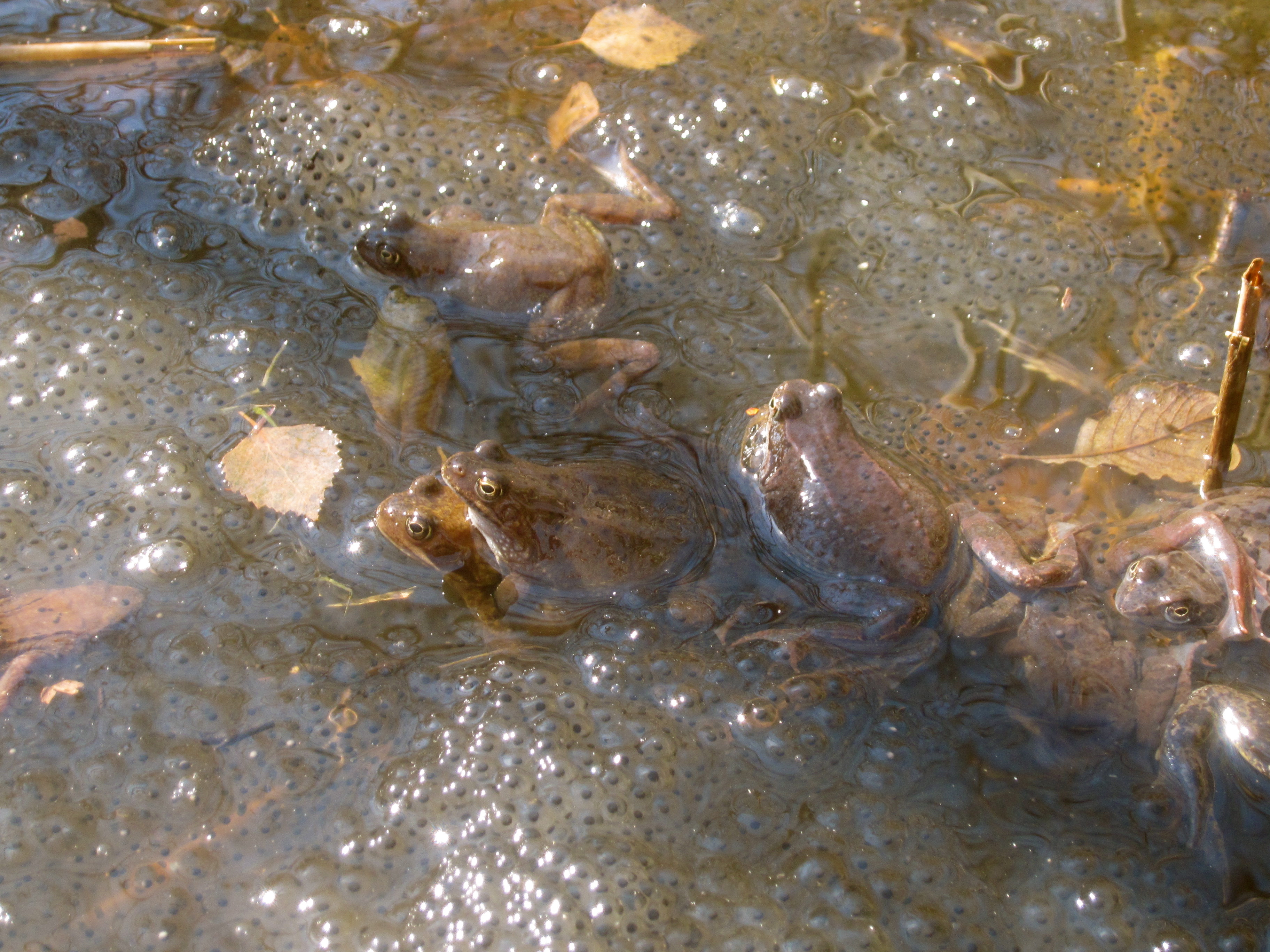 Det formligen kokar av liv i skogstjärnarna efter en vecka med vår, grodhanarna kämpar hårt för att hitta en hona och säkra att just deras gener förs vidare till nästa generation. om några veckor kommer det att simma runt massor av svarta grodyngel i vattensamlingarna och kämpa mot tiden i takt med att vattnet dunstar och tjärnarna blir mindre och mindre.