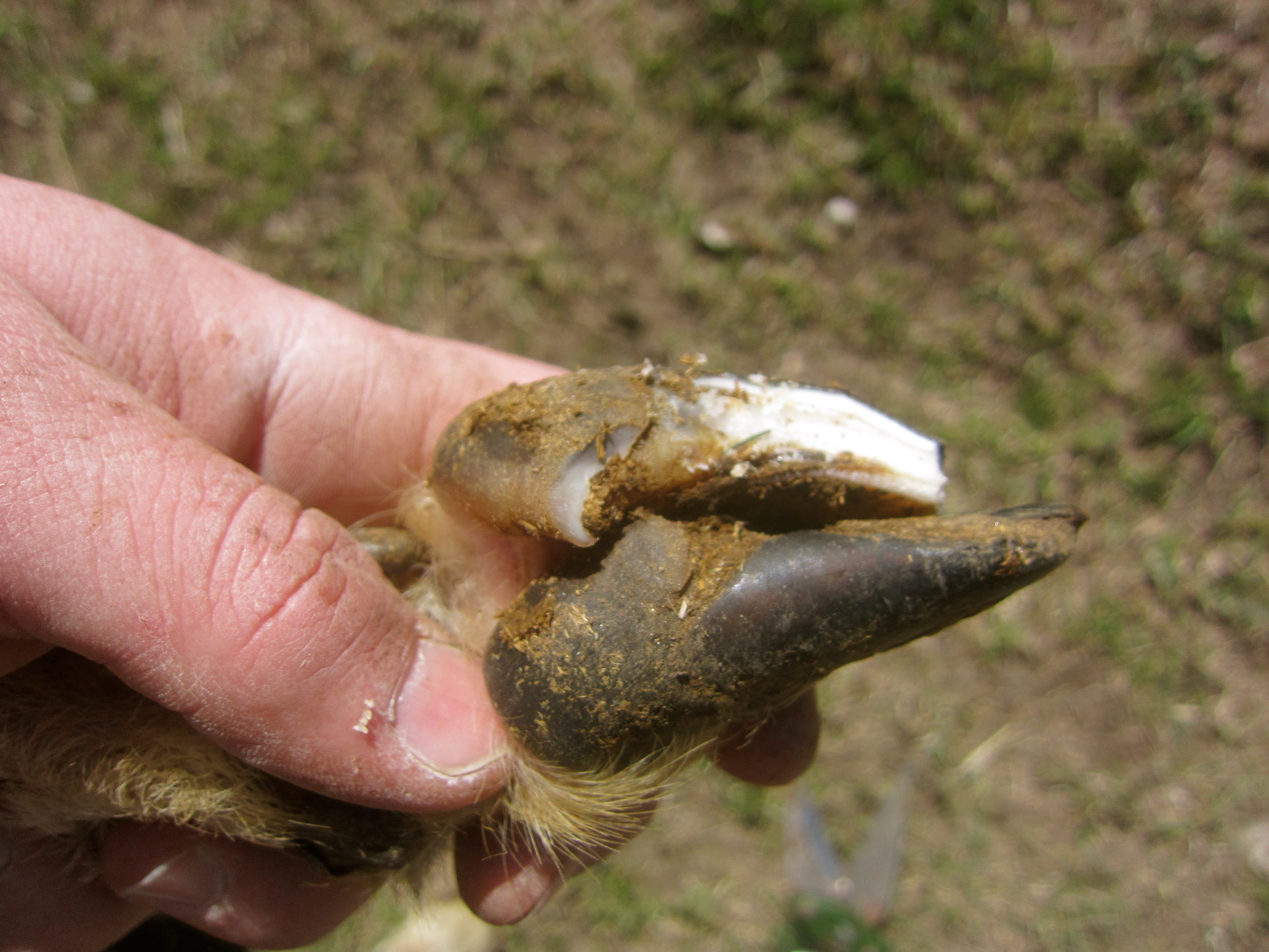 Halvvägs klar med ena bakklöven för den som är skarpögd ser man klövsaxen i bakgrunden.