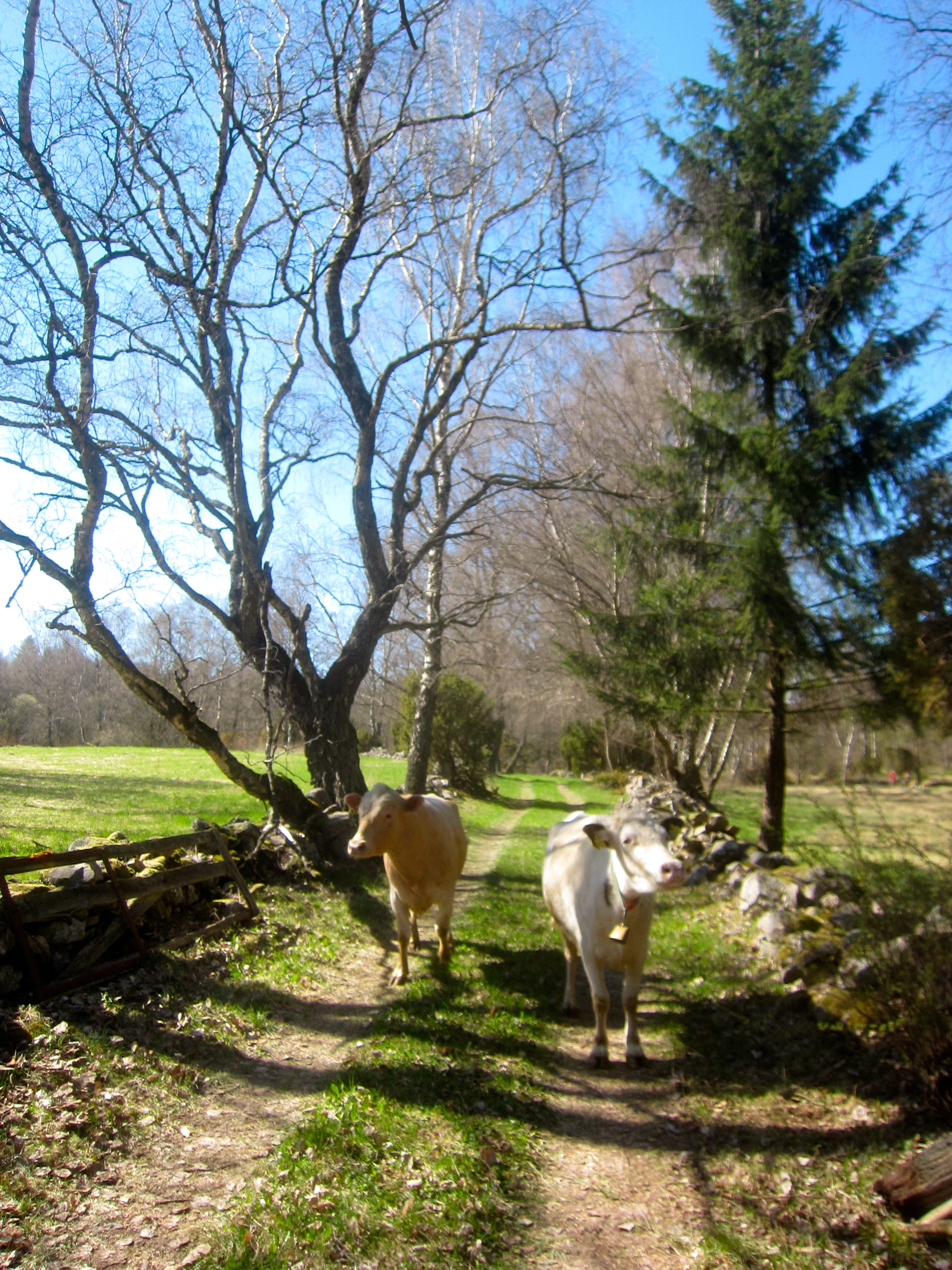 Total glädje när vår Fjällnära ko Saga och lånetjuren Gordon utforskar sin hage efter betessläppet så mycket att smaka på och springa runt i. Under vårvintern har vi jobbat hårt med att få fäladen i ordning för sommaren och när korna nu kommer på plats så känns det helt rätt. Kornas betande och tramp kommer att återföra detta området till sin glans dagar. Om några år kommer det att finnas tre fina slåtterängar och en beteshage rik på djurliv och växter.