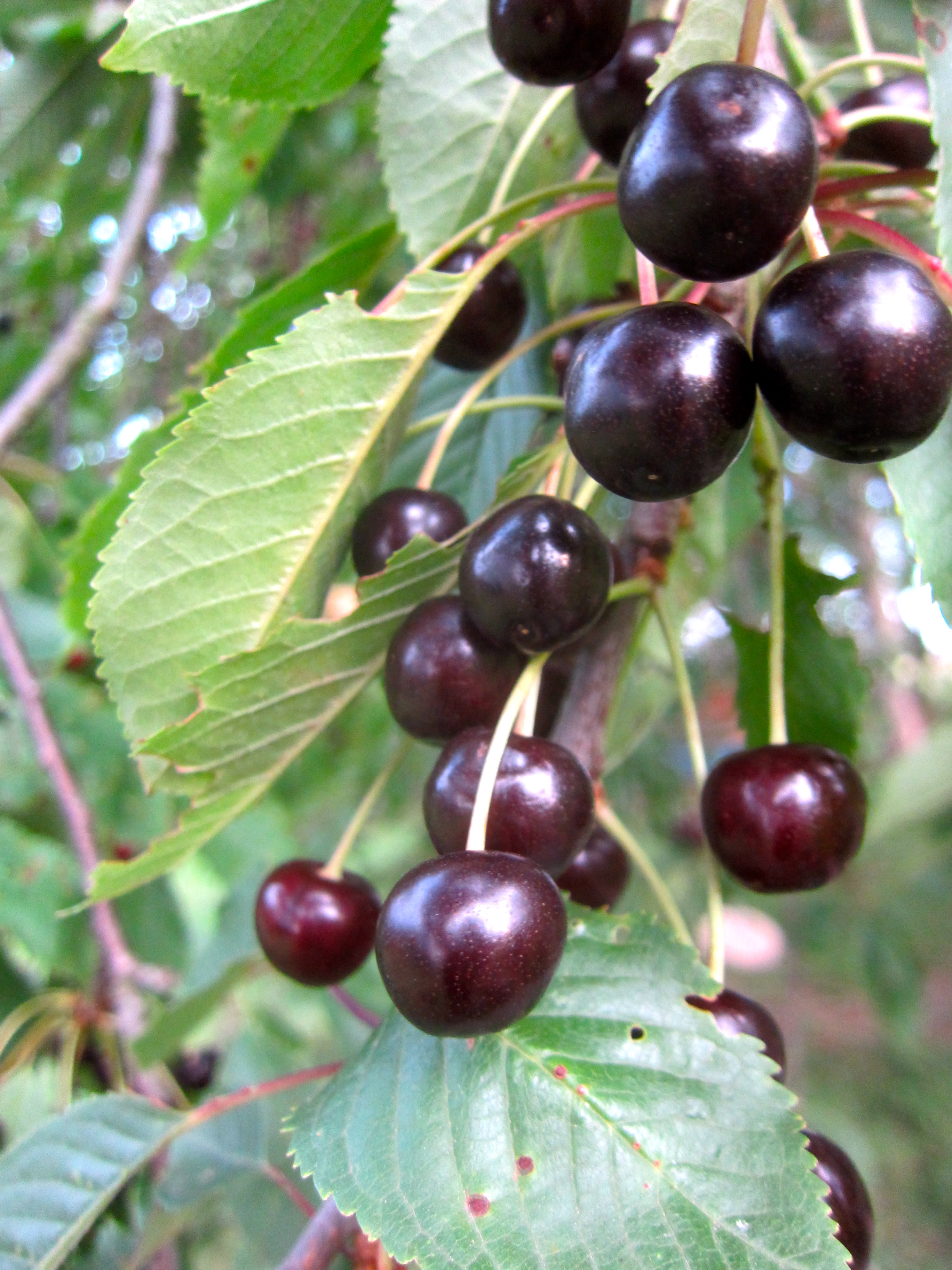 ImageÖverflödets tid i trädgården fruktträd så som körsbär bigarråer och persikor har grenar tunga av frukt, det är många som vill ha sina del av härligheten. Mycket av det som vi skördar säljs direkt till våra olika restaurang kunder. Primörfrukter som dessa njutes bäst färska men det är fantastiskt gott att han torkade körsbär som russin och infrusna persikobitar till glass. Men några körsbär får den stora äran att bli dränkta i socker och sprit med en liten vaniljstång för smaken, om nåt halvår är satsen klar och vi får några flaskor med körsbärslikör så när man sitter där med sin persikoglass kan man ha ett glas hemmalikör i handen och minnas dom varma dagarna medan yrsnön drar kring knutarna.