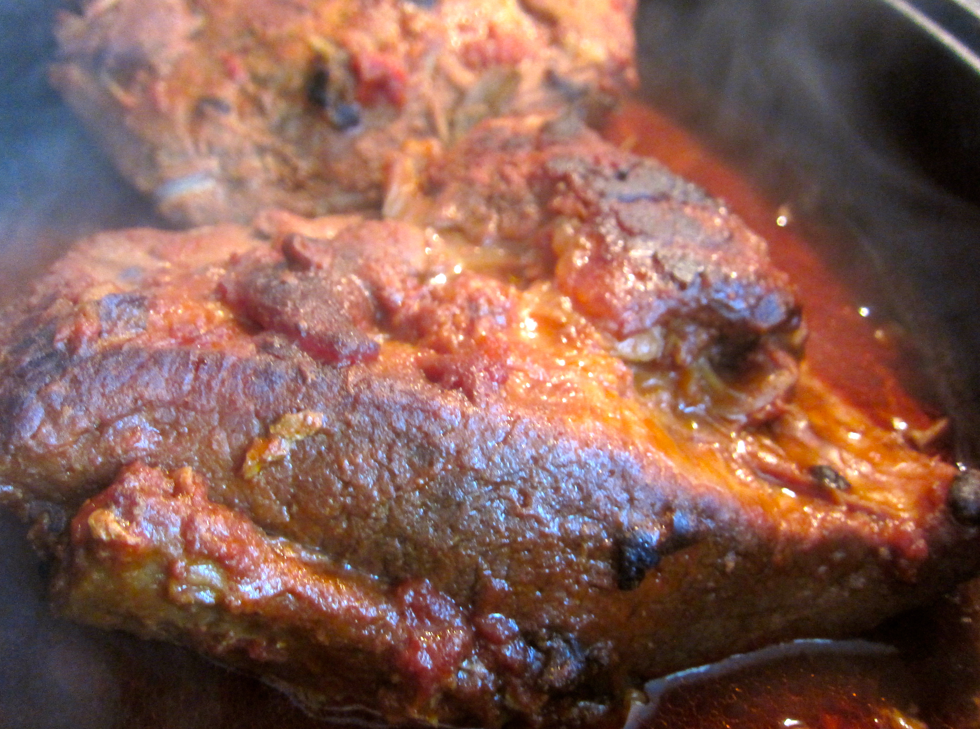 ImageI stället för fläsklägg kör vi i dag med nötbringa och ytterlår från våra egna djur, bitarna läggs i en järngryta med lock, till smaksättning tar vi en förpackning ekologiskt tomatkross svarta bönor blandad svamp från skogen, salt och peppar sen är det in i ugnen och vänta 5 timmar. När man sen serverar det hela är köttet så mört att det bara är att plocka bort bitar för kniv är helt överflödigt när man tillagar så här.