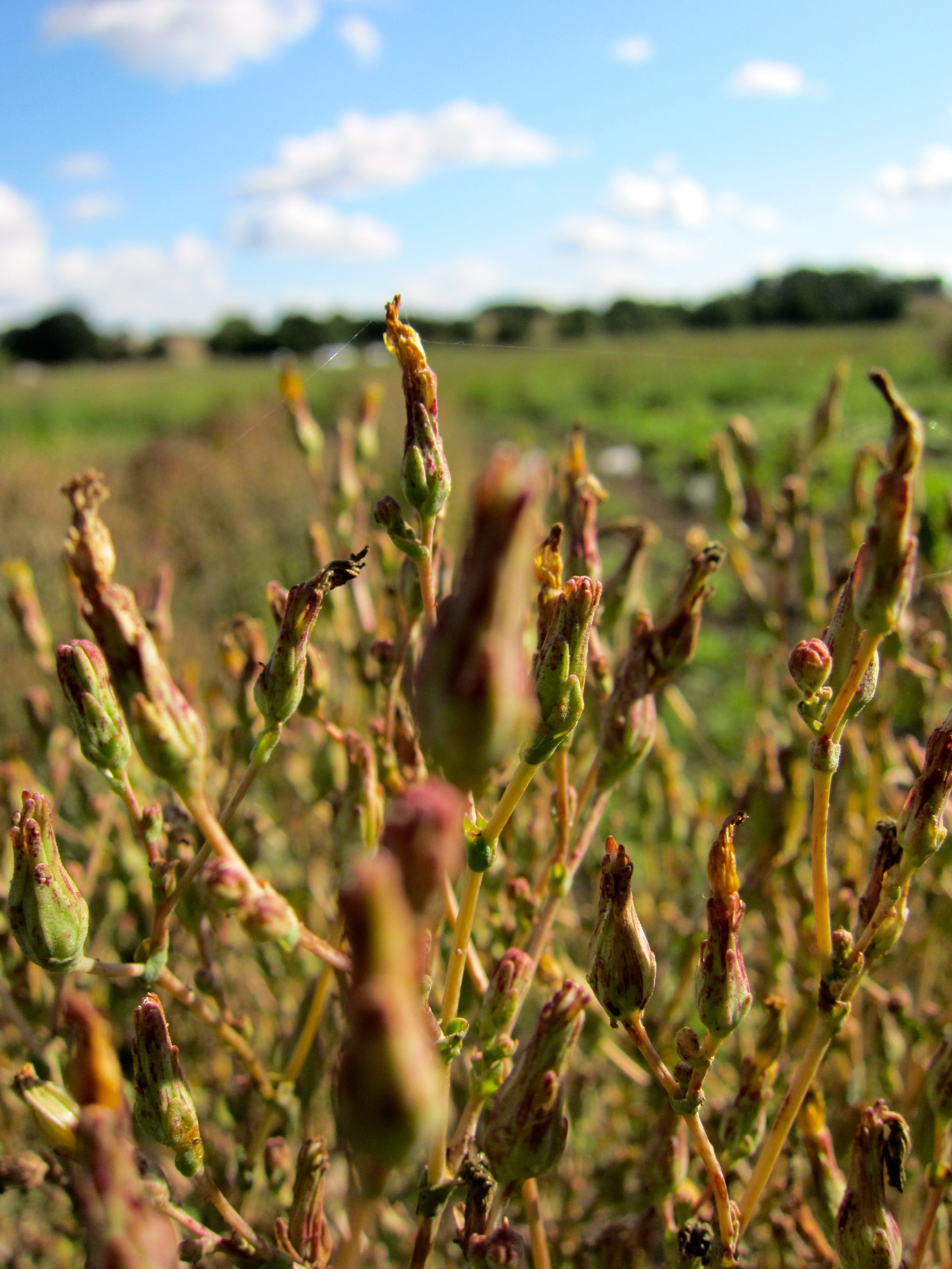 Så här fint kan man få det om man slarvar lite med att skörda sin sallad. Detta är sorten Flashy Butter Oak. Vi har odlat den i flera år och alltid varit mycket nöjda med hur god och tålig den är. När det gäller första omgången av sallad på våren sätter vi alltid lite mer än vad vi behöver. De plantor som är mest typiska i storlek, färg form få stå kvar medan det andra skördas. Flashy Butter Oak är ganska trög att få att blomma vilket är bra vi strävar efter sorter som har en lång skördetid. Den blommar med diskreta gula blommor i omgångar och när det första frökapslarna öppnar sig tar vi upp hela plantan hänger den upp och ner med en papperspåse kring fröställningarna så att man fångar upp dem allt efter som de mognar.