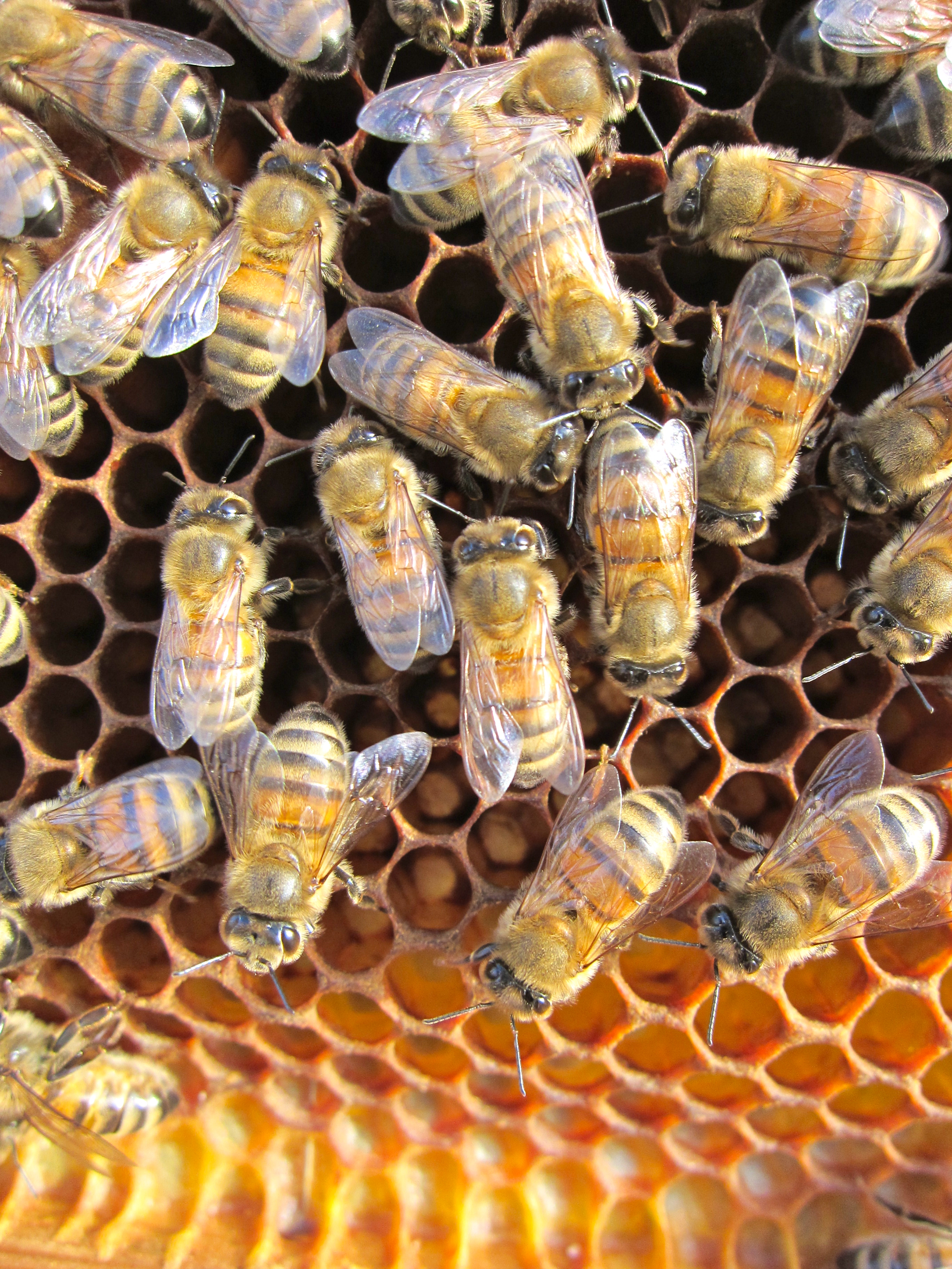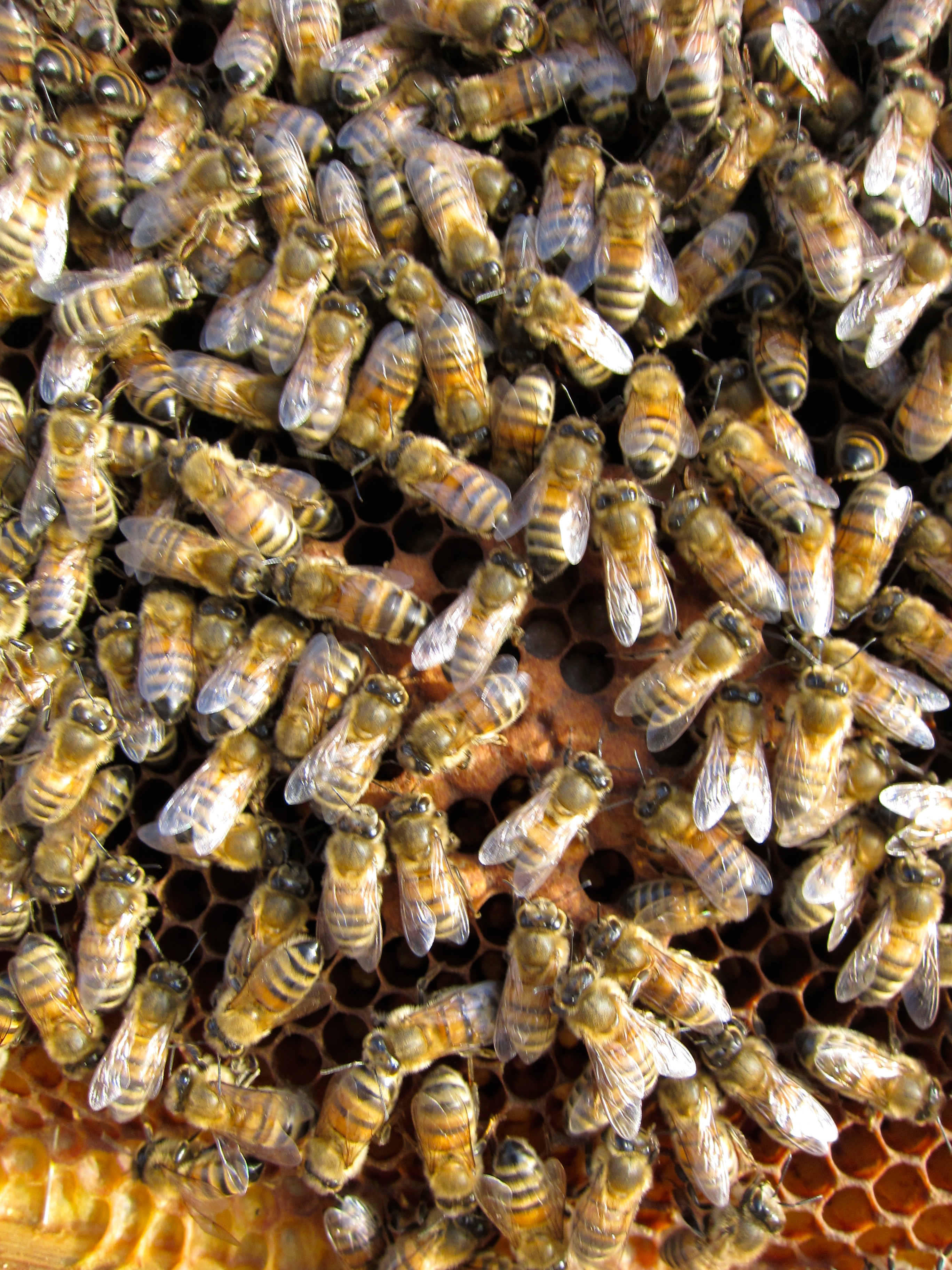 Men vi hade ett ärende till två av samhällena i dag, det skulle äntligen få flytta från sina tillfälliga avläggningskupor till en fin dubbel trågkupa där det kommer att få det betydligt rymligare. När vi flyttade över ramarna fick man sig en överask när flera av dem innehöll täckta yngelceller så väl som larver och ägg. Ingen hade berättat för bina att de borde ha slutat med det så här års och i stället fokuserat på vila inför kommande säsong. Bägge samhällena var birika och hade gott om foder så denna manöver borde inte ha medfört allt för stora störningar för samhället.