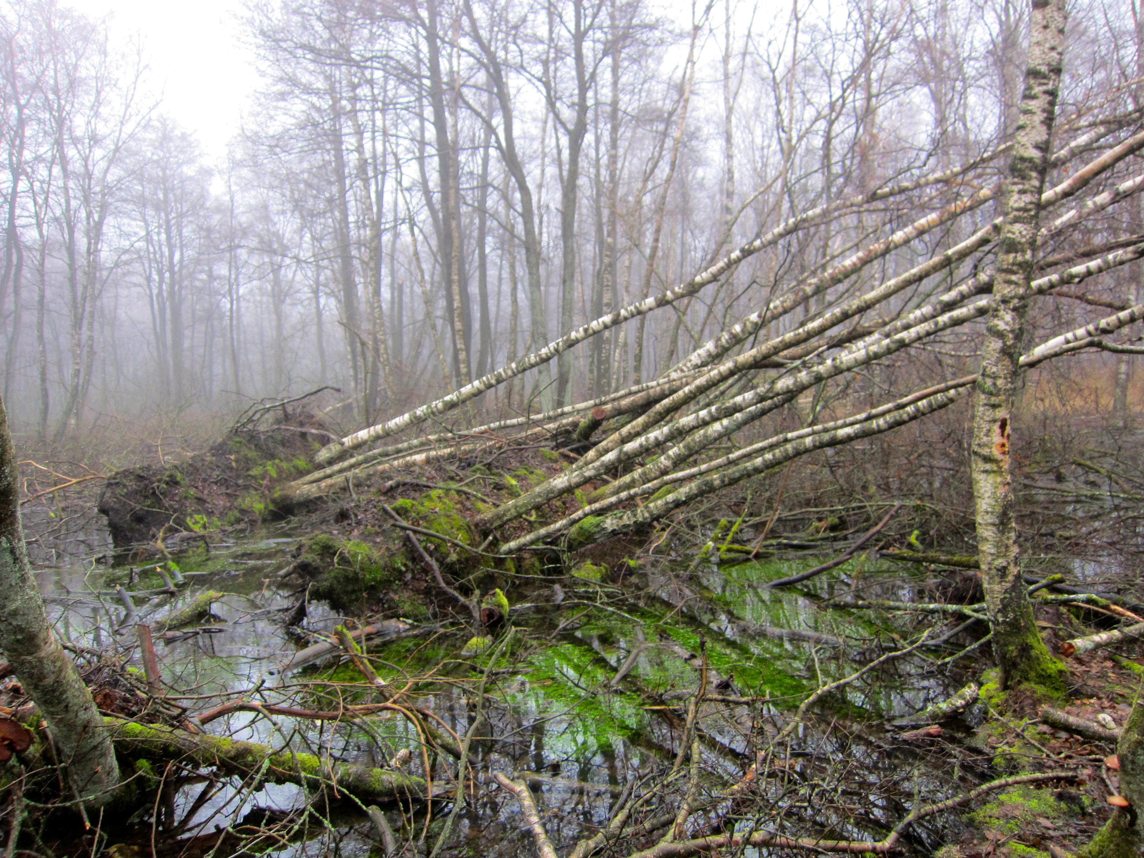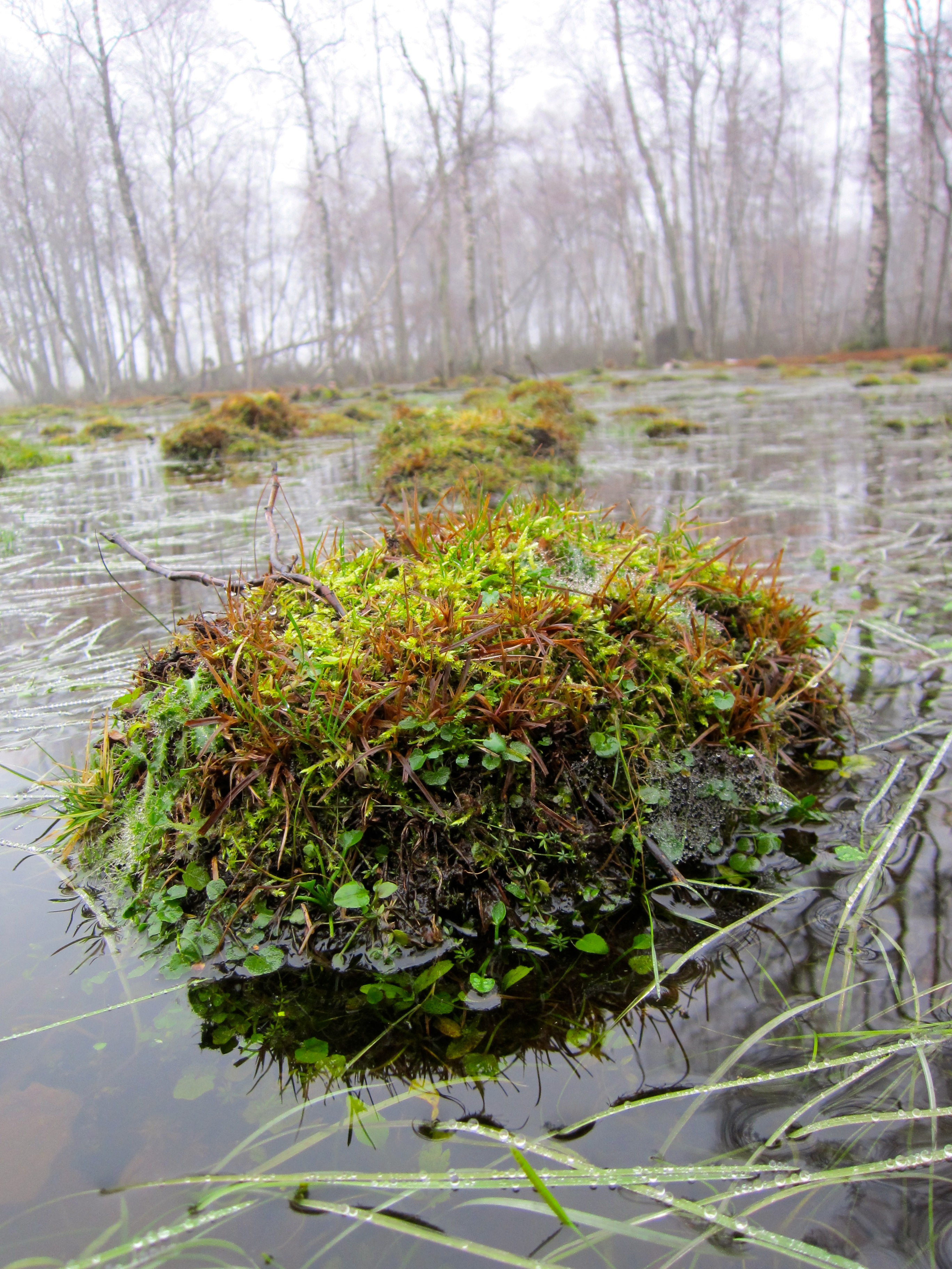 Vi kraftig nederbörd och snösmältning blir den lågt liggande mossen mera en sjö än skog. Det områdena som tillhör gårdar som varit flitiga med torvskördandet är nu helt under vatten och det ända framkomliga vägarna är det vallar som lämnats för att kunna frakta den torra torven ur mosen. Dessa vallar är till stora dela bevuxna med träd och under stormar som dessa ligger därför träden i skock längs med dessa.