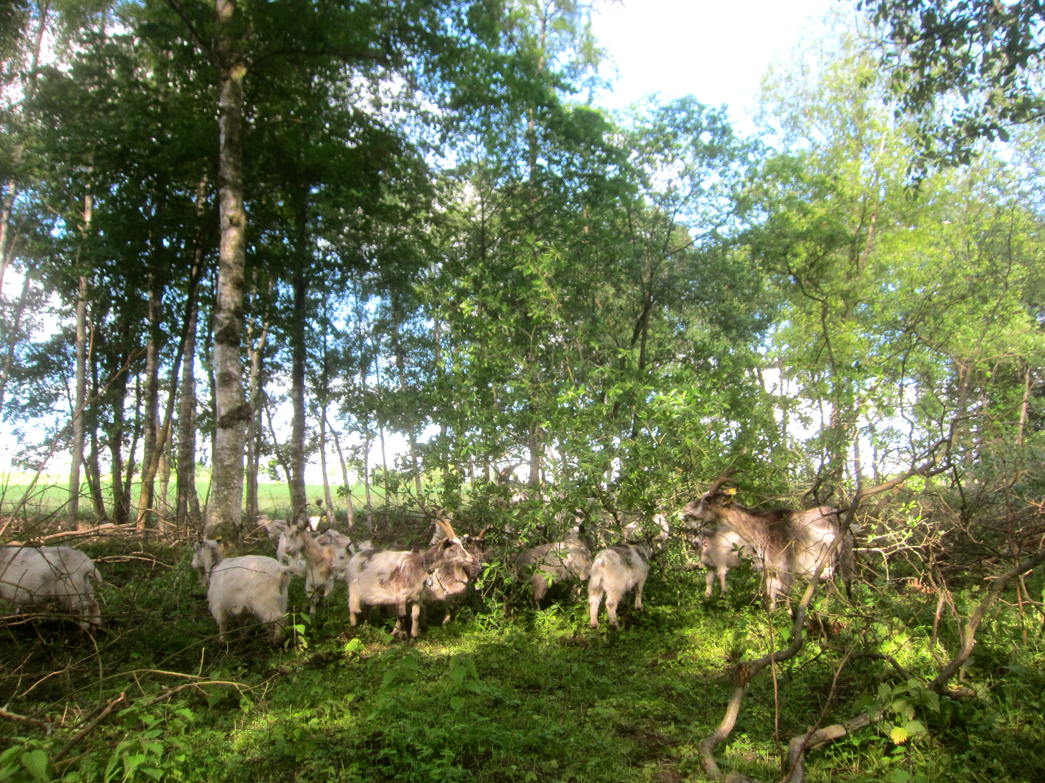 Våra getter har jag prisat i flera inlägg och nu när vår getflock ständigt växer passar det utmärkt med mera betesmarker till dem. Vårt första och största område har inte så mycket kvar av sly att fälla till getterna och har nu under stormarna fått en hel del vindfälle och det passar nästa korna bättre när det gäller att underhålla ett område som vi gör allt för att gynna en kraftig och smakrik gräs och örtflora.