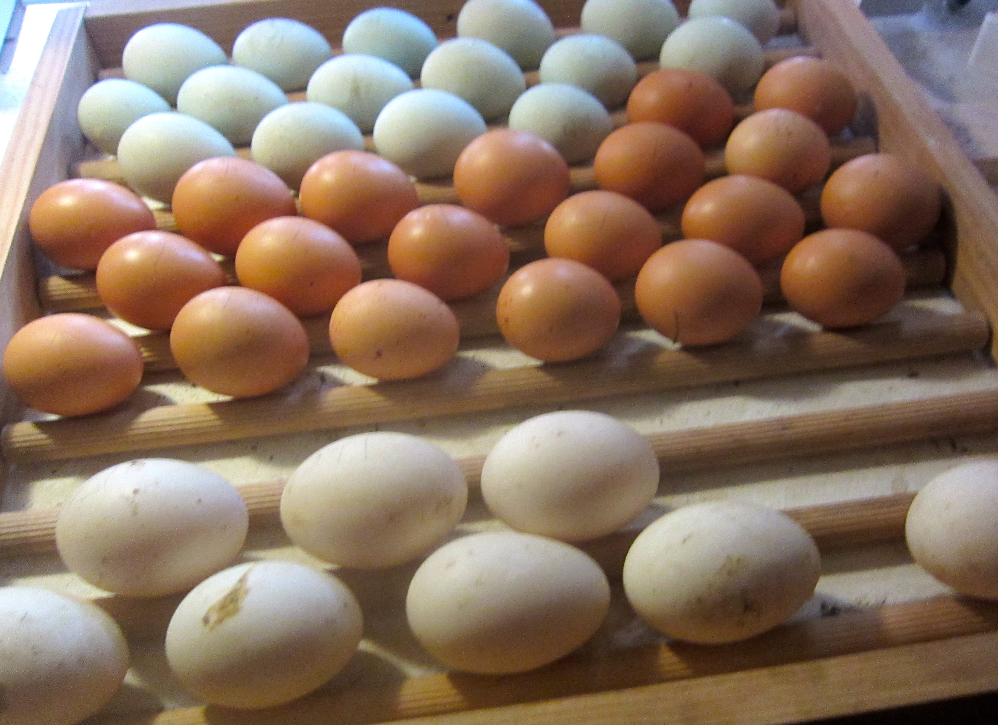 Förutom att kläcka till oss själva och för att bibehålla storleken på våra avelsgrupper säljer vi både avels och matägg till restauranger och privatpersoner. Många hämtar direkt på gården men vi skickar även en hel del med posten till dom som inte har möjlighet eller bor för långt bort. Om man redan har en besättning eller vill börja från grunden är avelsägg den perfekta starten, mycket av dom sjukdomar som finns och som drabbar fjäderfä smittar inte via ägg eller så är möjligheterna att desinficera äggen betydligt enklare än om man tar in ungdjur eller vuxna. Även möjligheten att skicka ägg gör att även om man inte har så stor plånbok eller egen bil kan man skaffa sig nytt genmaterial till sin flock.