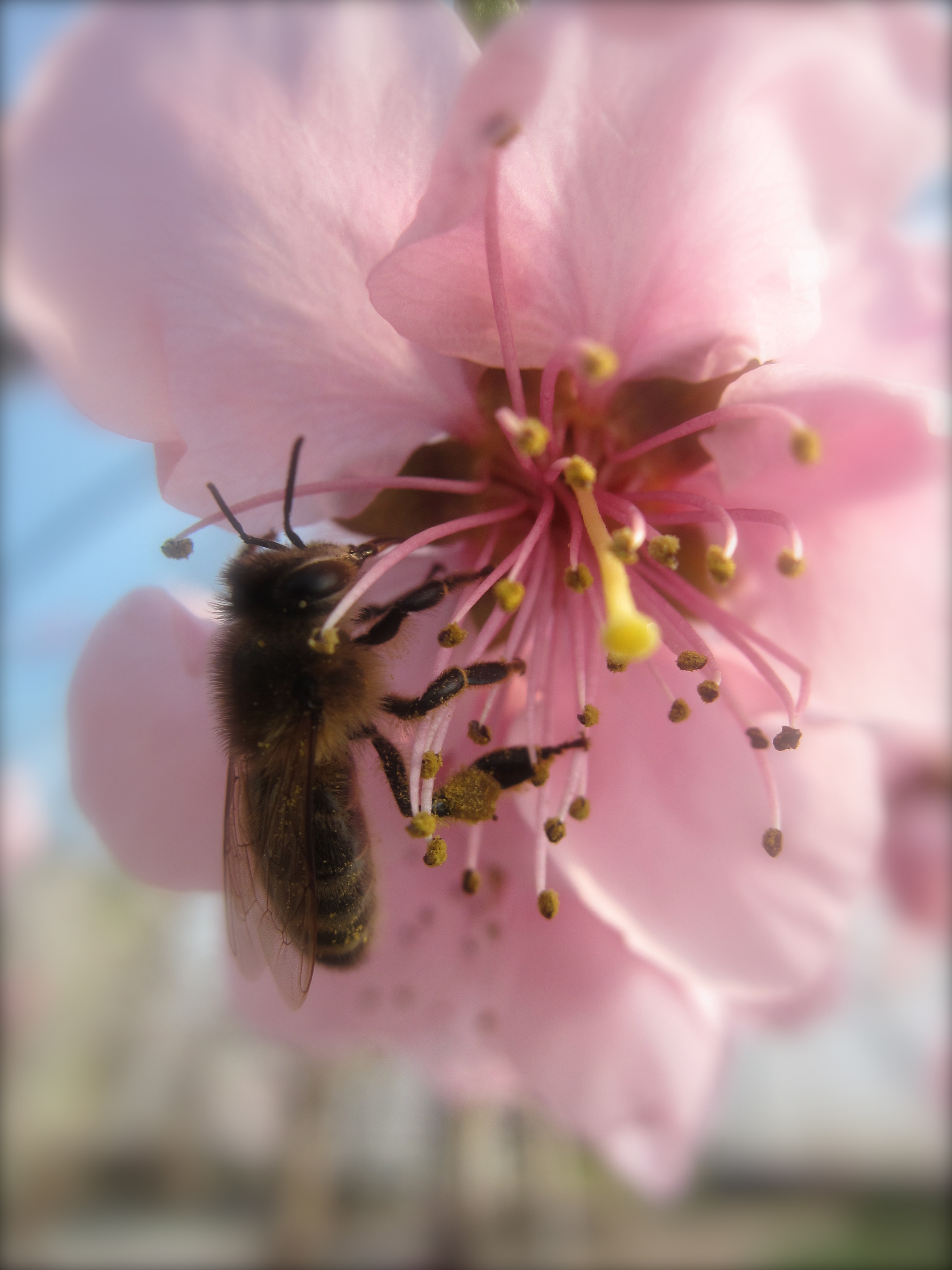 Vissa dagar känns det som att alla bitar faller på plats och allt det man föresätter sig blir verklighet. Den tidiga våren gör att man kan omsätta all den där odlarlusten i handling ute i trädgården, så medan vi jordförbättrar odlingarna med fåren ströbädd från förra vintern hjälper några av våra minsta vänner med pollineringen av våra blommande fruktträd. I vårat stora växthus finns det en liten fruktgård med aprikoser, persikor och nektariner. Trots att vi inte har någon värme där inne blommar träden redan med sina skyar av rosa och vita blommor, bina blir väl belönade för sina tjänster i form av nektar som behövs ute i kuporna nu när antalet bin ökar för att hinna med att samla nektar och pollinera inför den kommande våren och sommaren.