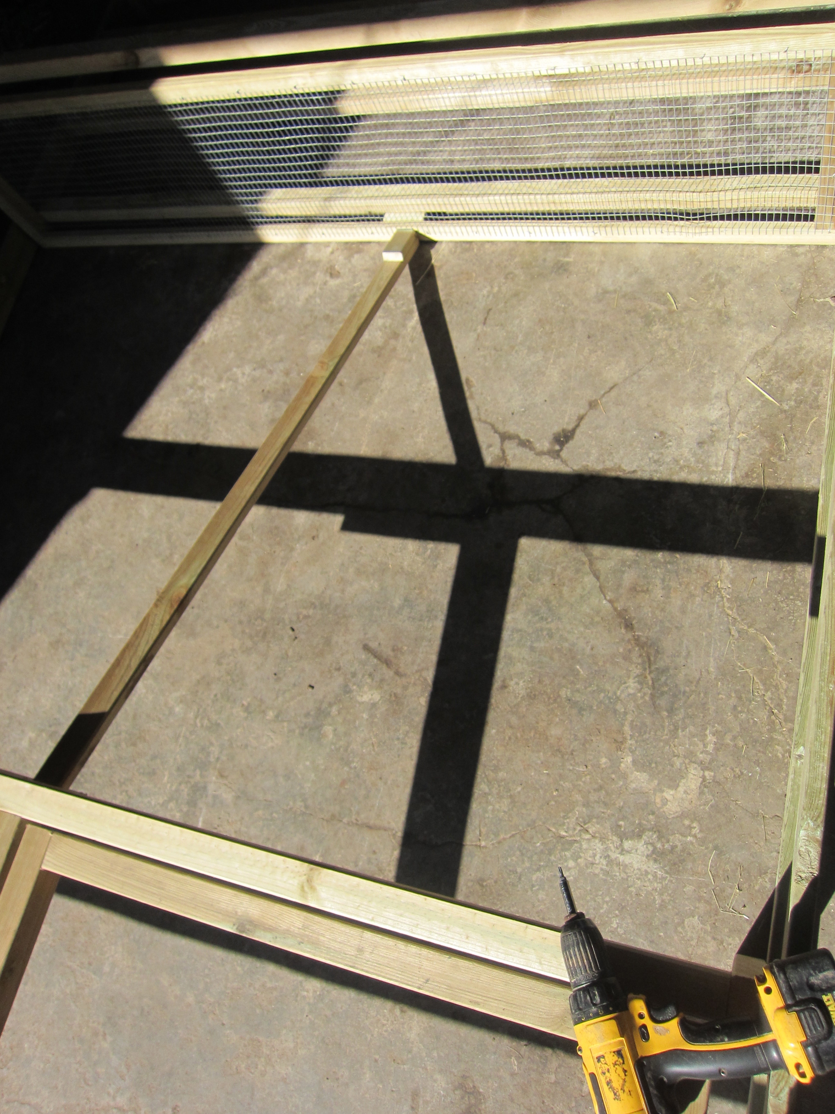 Ser inte så mycket ut för världen nu men detta är en av våra nya betesburar som vi skall ha till våra kycklingar. Teori är en sak men man måste prova sina tankar och funderingar ute i verkligheten, därför håller vi nu på och bygger en serie på fem burar. Alla är lite olika och tanken är att se vilken som djuren trivs bäst i och som är enklast för oss att flytta runt så kycklingarna får nytt färskt gräs varje dag när de är ute. Liknande burar förekommer i andra länder tyvärr kan man inte kopiera dessa rakt av utan de måste förbättras för att följa svensk lagstiftning och det regler som Krav har satt upp. En vanlig kyckling som man köper ute i affären har bara levt i ca 30 dagar, våra kycklingar lever i 140 dagar, det ställer helt andra krav på sin miljö och det är det som vi försöker tillgodose med dessa flyttbara betesburar.