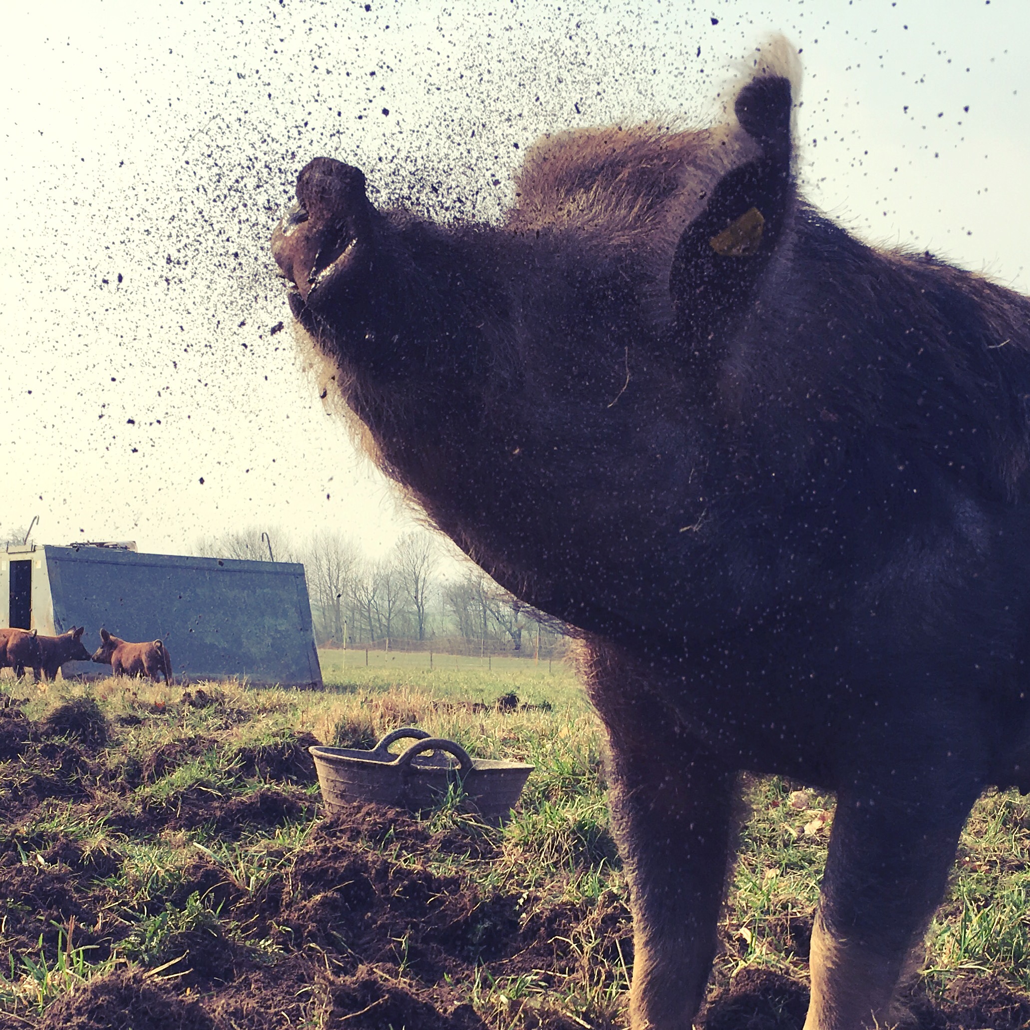 Grisar har inga svettkörtlar så när det är varmt måste de svalka sig i lerbad. När grisen är sval igen går den upp och låter leran torka få fastnar även fästingarna i leran och när grisen kliar sig eller skakar sig precis som en hund gör när den kommer upp från vattnet så lossnar både lera och fästingar. Leran har också en tredje funktion och det är att skydda grisens hud mot solen, grisar kan precis som människor bränna sig när solen är för stark #linderödssvin #linderödssvinetsdag #bevarande #pasturepigs #jordpåtrynet #freerange #ekologiskt #exceptionellråvara #familyfarm #smallfarm #beyondorganic #bokeslundsgården