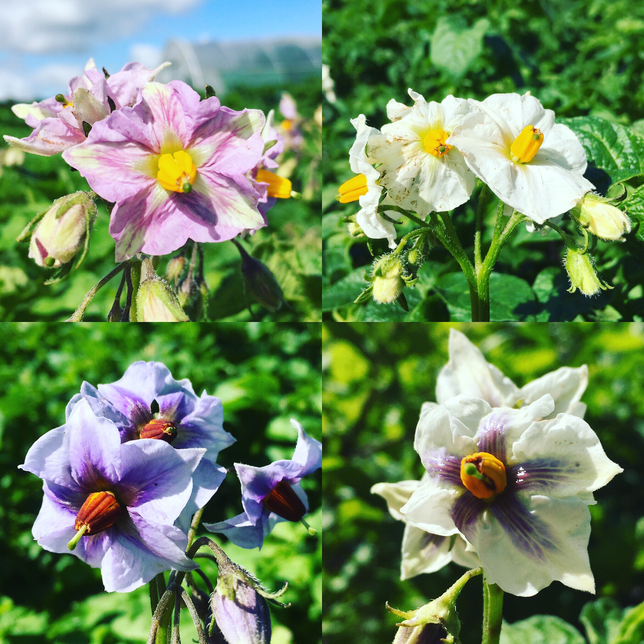 Two months after they came into the ground, almost all of our potatoes bloom.