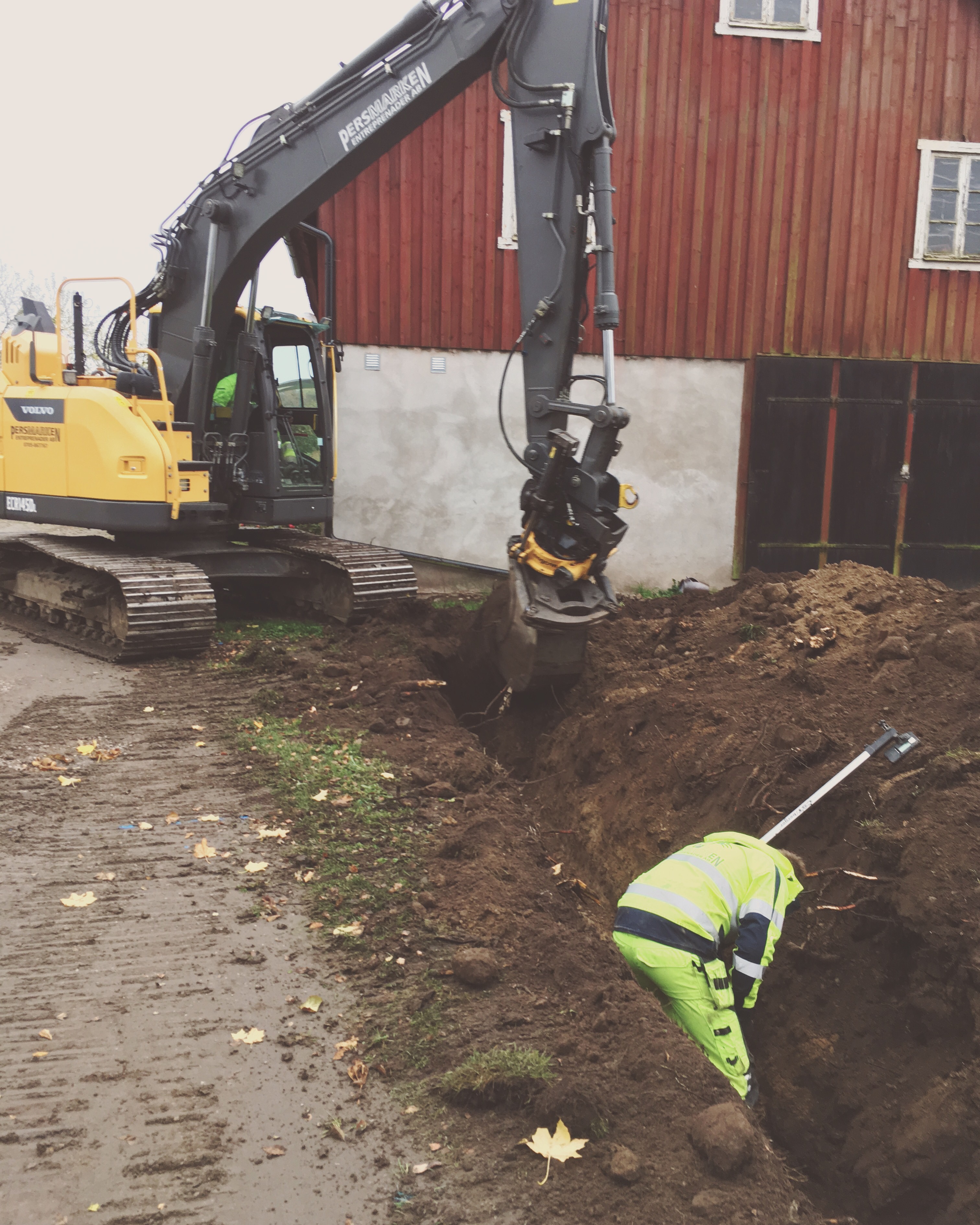 Yes vi skaffar äntligen en vallgrav runt huset! Det var min första tanke när man ser arbetet på gårdsplanen. Det är egentligen mycket mer spännande nu när vi ordnar med VA till vårt nya honung och mustnings rum. Vi förvaltar nästan 300 gamla fruktträdsorter på gården, här finns det godaste frukten du någonsin ätit men också special sorter för must och cider, med 10-15 år i etableringstid från plantering tills vi kan få det första riktiga skördarna har det varit en lång väntan. Det är inte mer än rätt att biodling och fruktodling följs åt ute i fält och i förädling #pollineramera #genbank #fruktodling #heritagevarieties #cider #must #honung #raw #beekeeping #beyondorganic #smallscale #exceptionellråvara #supportyourlocalfarmer #eatclean #matutanskit #ärligmat #bokeslundsgården