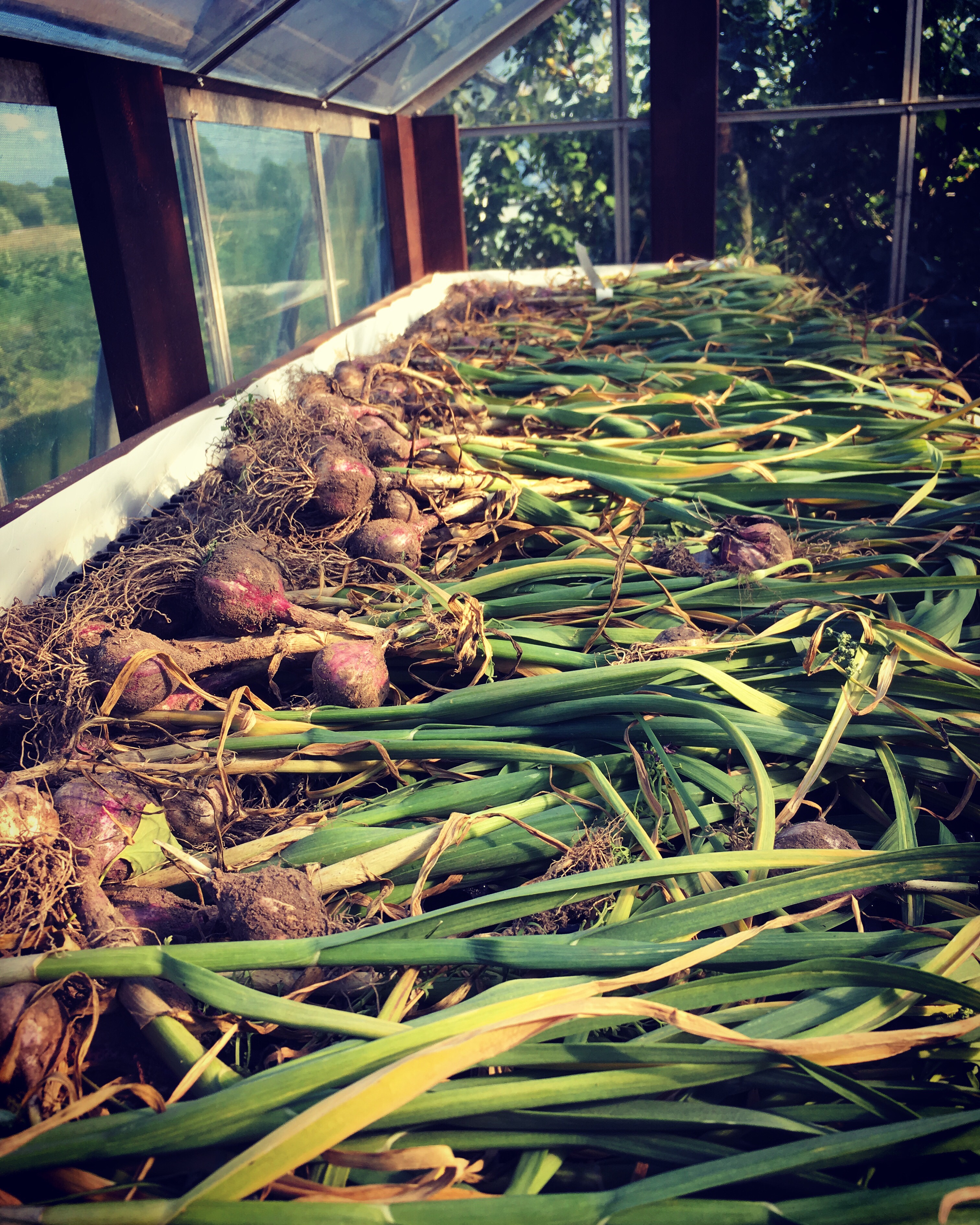 Tysk 1948 a heritage variety from Germany 🇩🇪 Most is for seed saving but to delicious not too taste some #garden #garlic #firstharvest #homegrown #vegetables #vitlök #supportyourlocalfarmer #bokeslundsgården