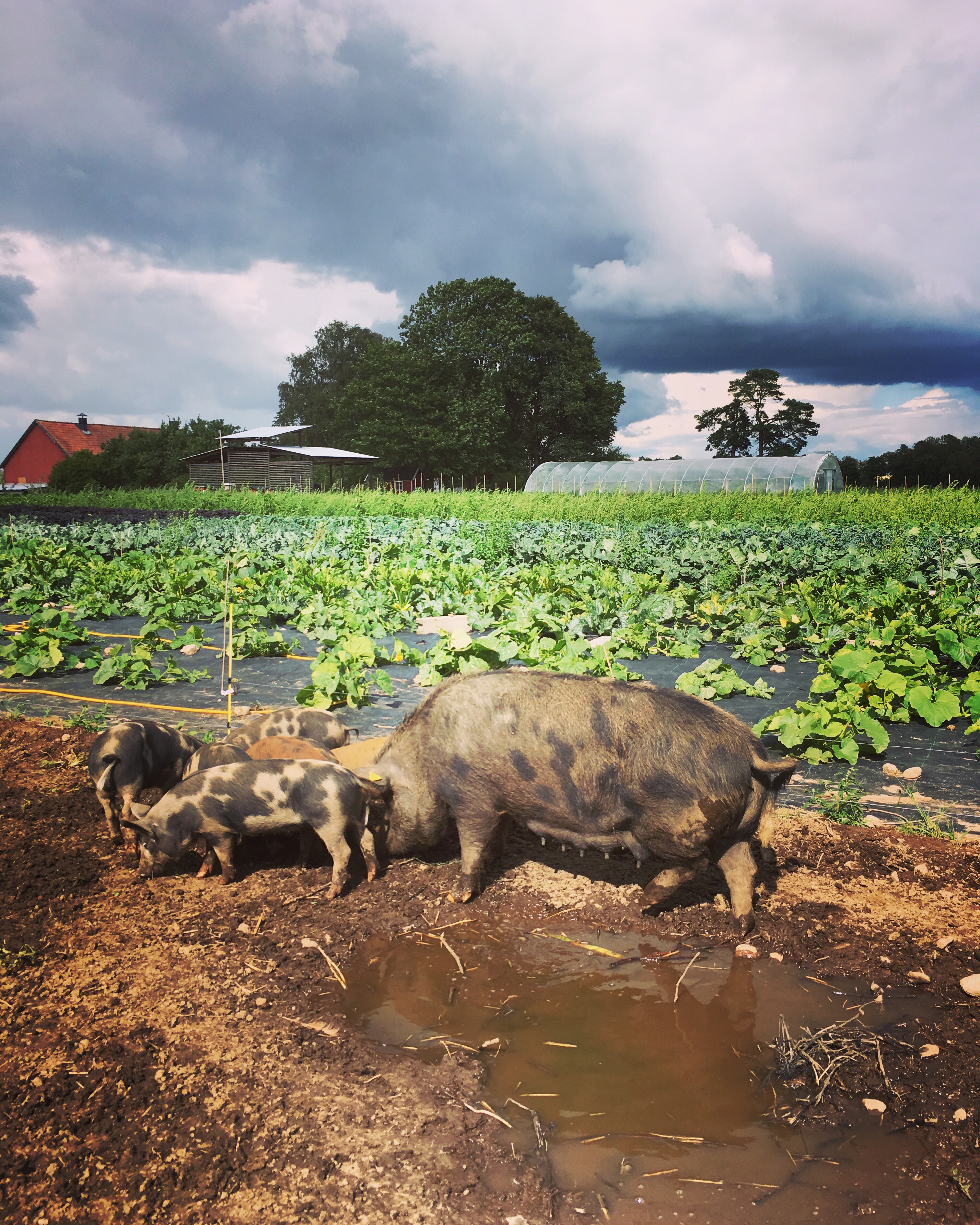 That’s one of the most efficient tools that organic farmers us to get going crops. It basically means that you use your knowledge to avoid problems, growing the same crop year after year in the same patch of land leads to problems. Instead of treating the symptoms we attack the root of the problem and growing a multitude of different crops exactly like our big teacher nature does. We take it a extra level and also us animals in our crop rotation, the pigs help us by eating weeds, dig up stones and fertilizing the soil. Pigs this year and next summer squash and winter pumpkins in the same space