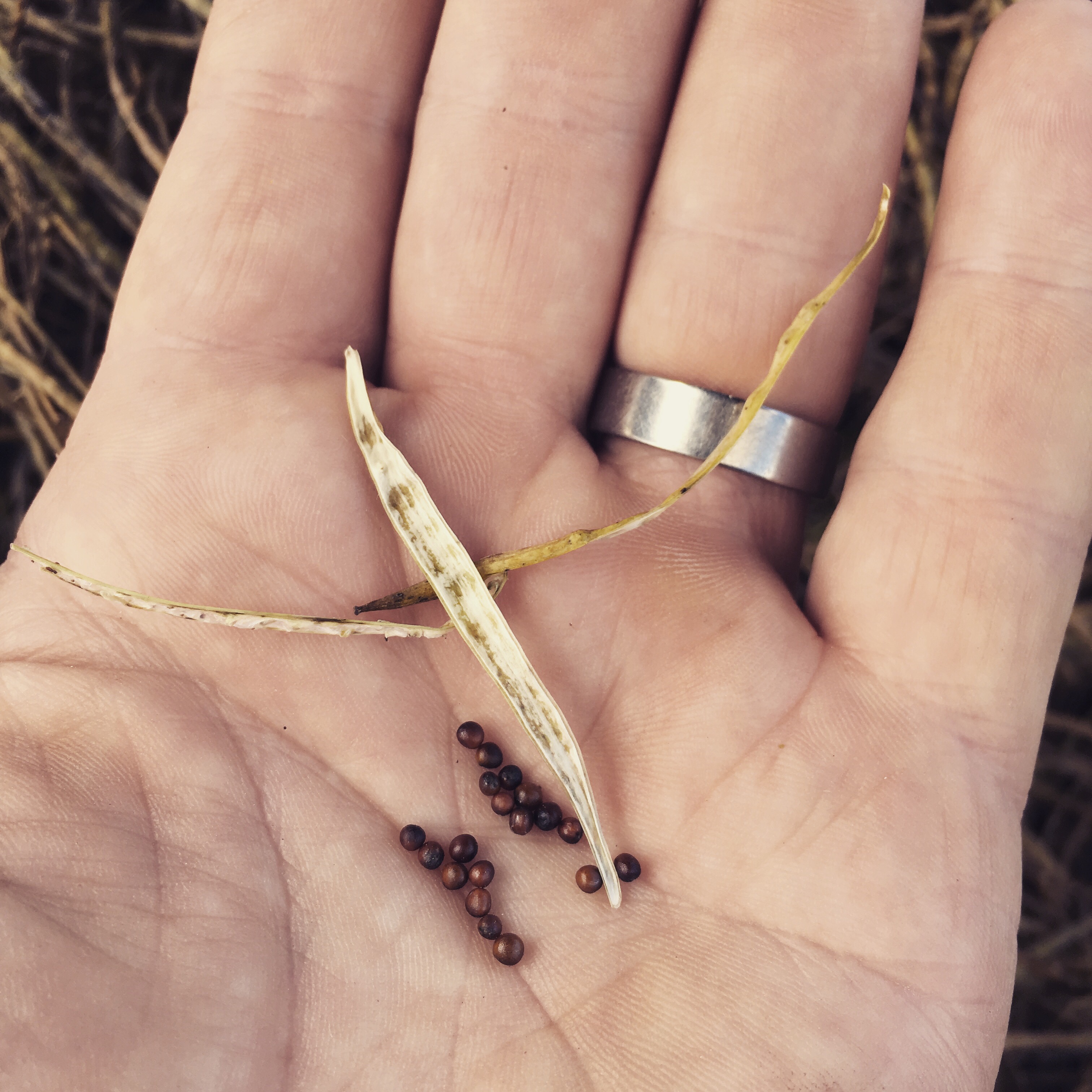 Äntligen är fröet moget från våra 45 moderplantor, i två år har vi vårdar dem ömt för att komma hit. Tillsammans med Matti Wiking Leino och Kålrotsakademien kommer vi att försöka göra dessa frön tillgängliga så att fler odlare och frösparare själva kan odla denna vår enda svenska vitkål. Med en mild kålsmak som mötet det peppriga i ruccola är detta en sann delikatess