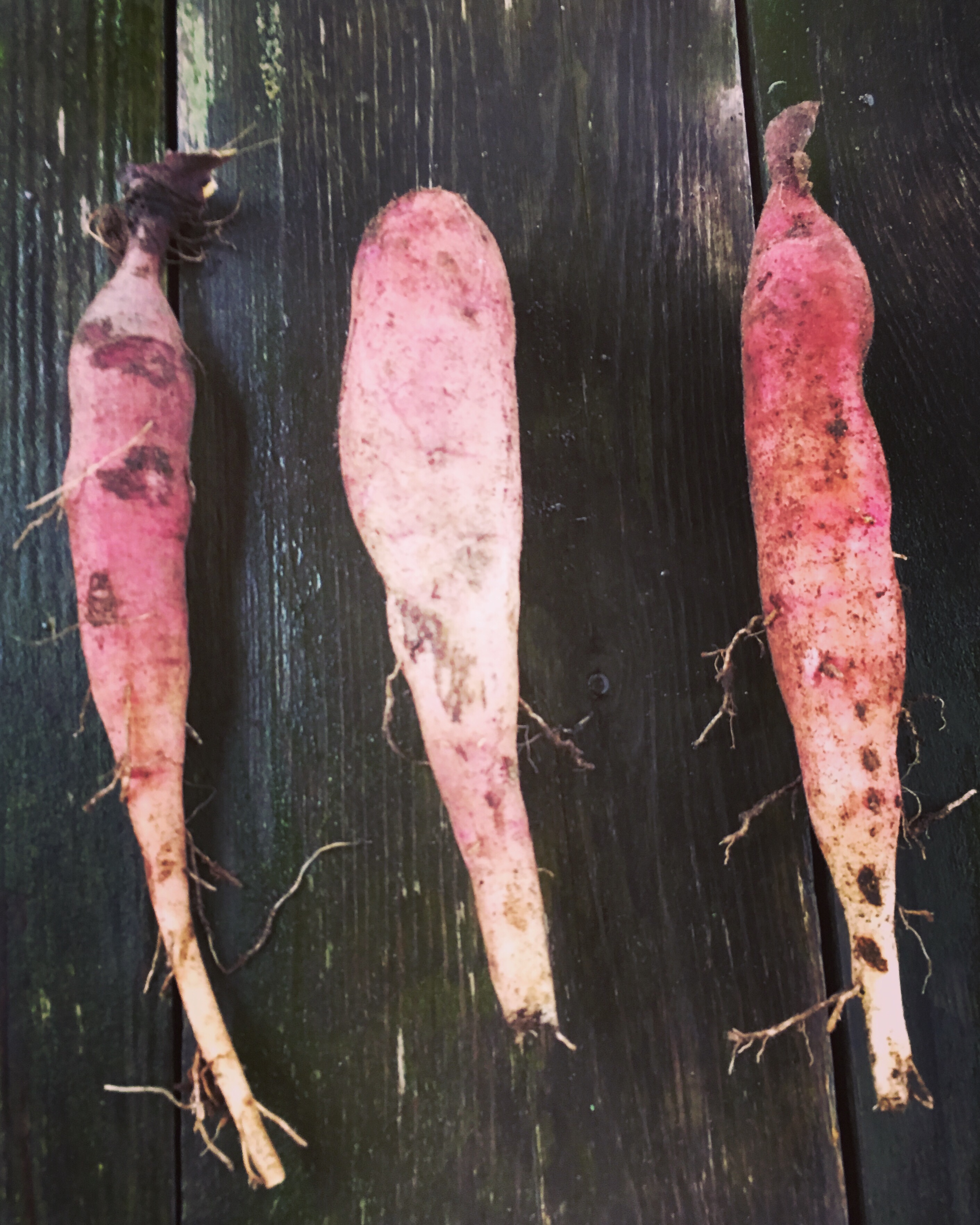 Become a fairly big plant with yellow flowers preferring a rich soil and not to much moisture. After being nipd by the first frost it’s time to harvest. And even if we grow a lot of South American stuff this particular species is a new addition.