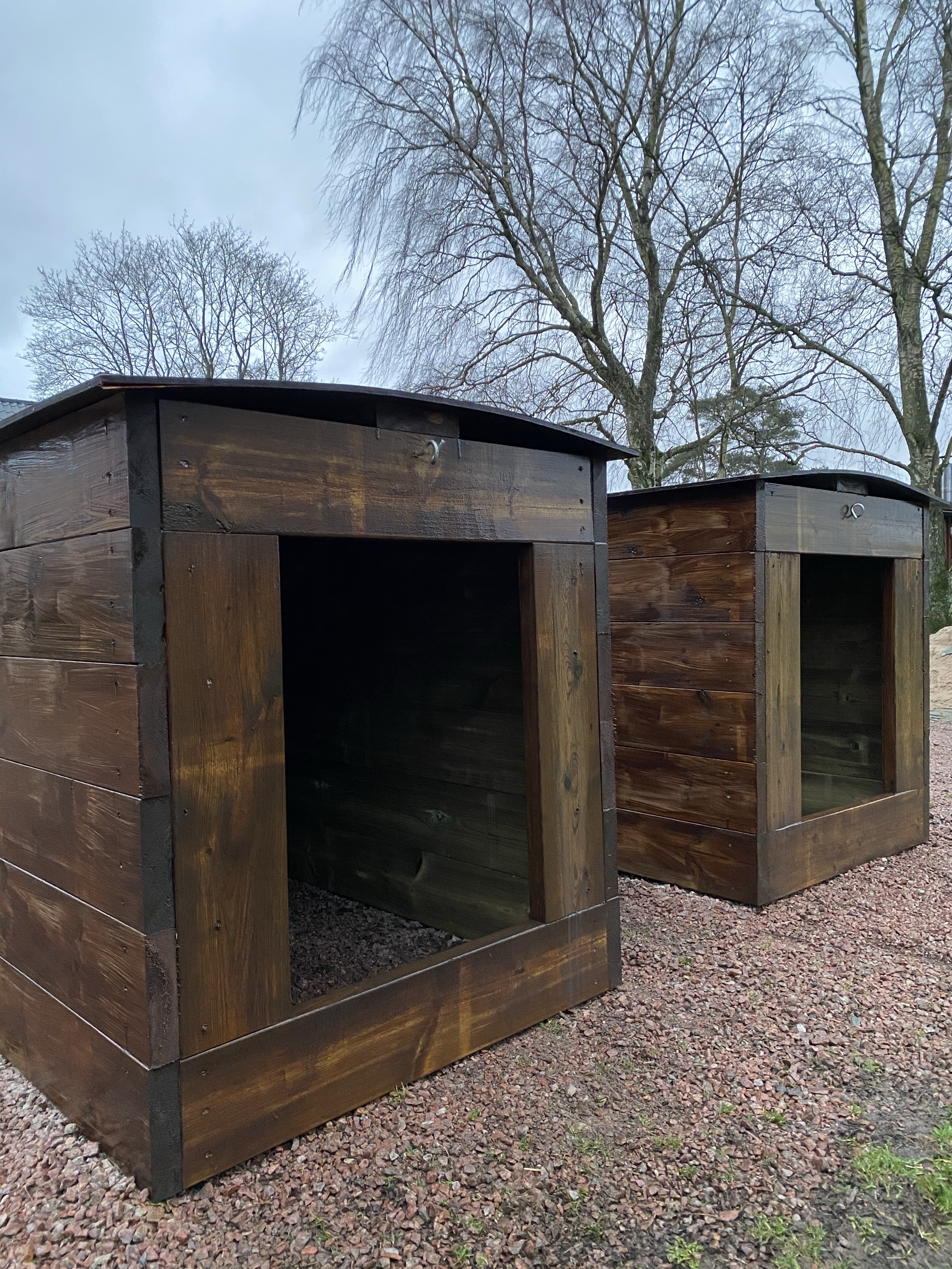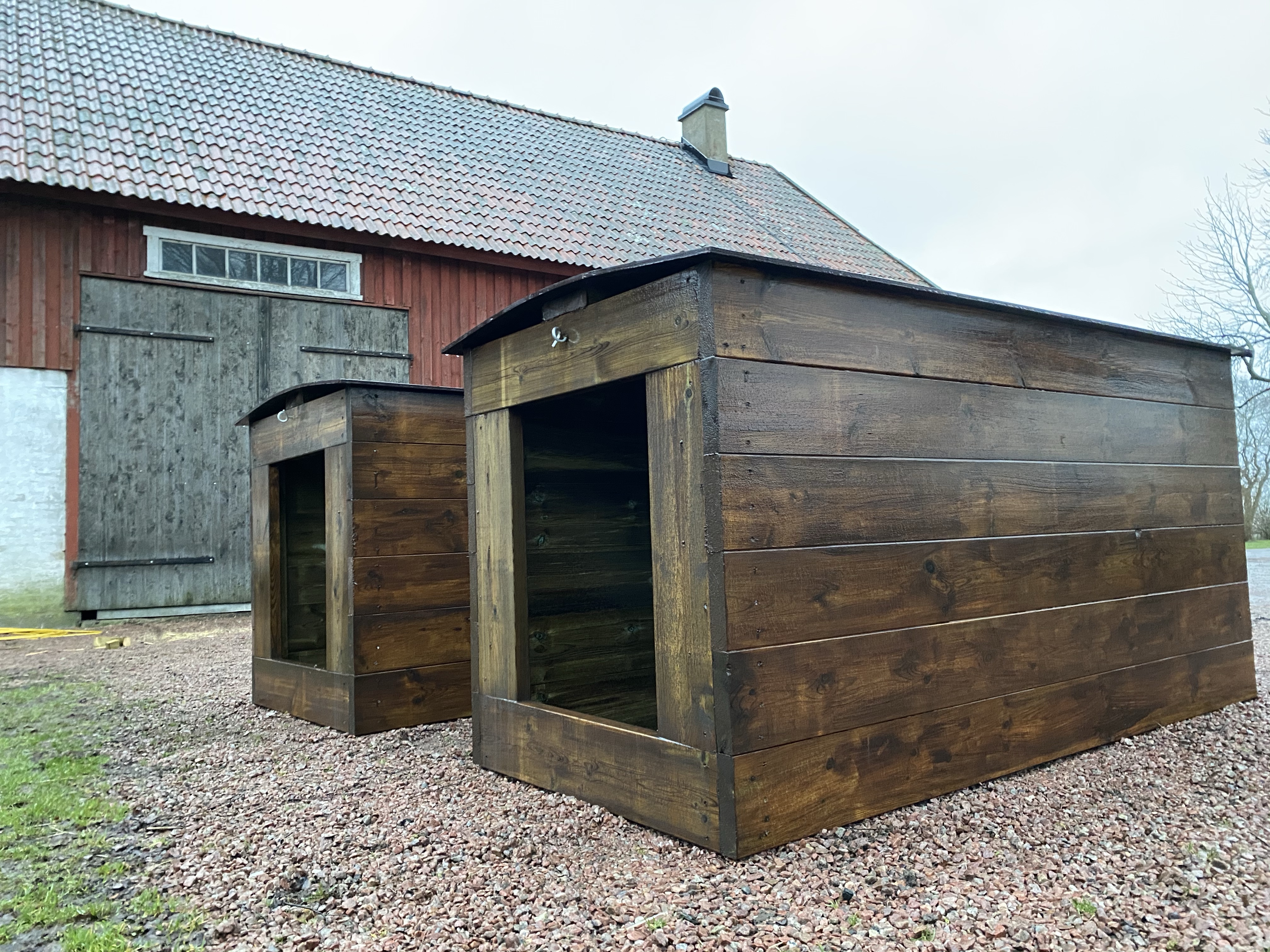 Two new piglet houses painted and ready for us, and by chance also greatly anticipated when we soon have baby piggies coming and our big houses are needed for the new mothers and kids.