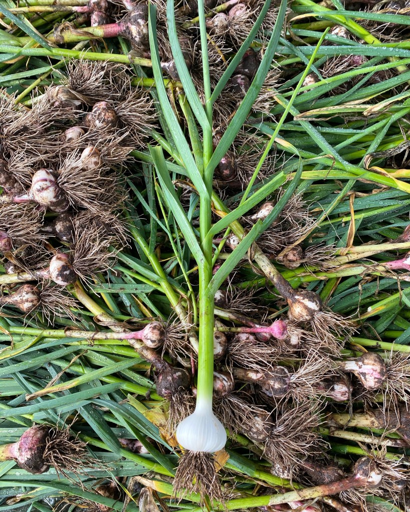 Hoping for sunny and dry weather but we got rain, heavy winds but garlic still need to be harvested today