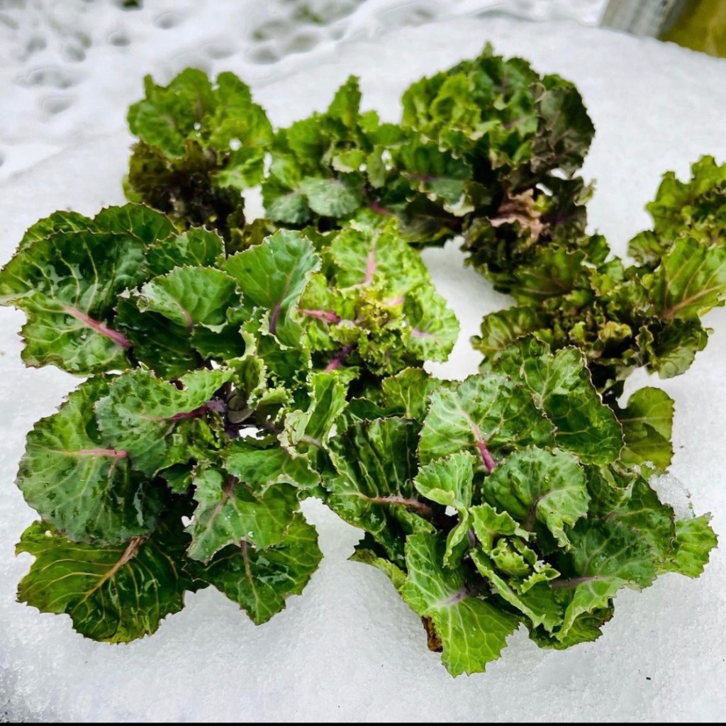 One of the newer types of cabbage that we grow is this cross between kale and brusselsprouts. It takes for ever to grow out but just when you are about too give up on it then it shines. Most stuff is resting in the garden under the snow but these small buds are just perfect to harvest now.