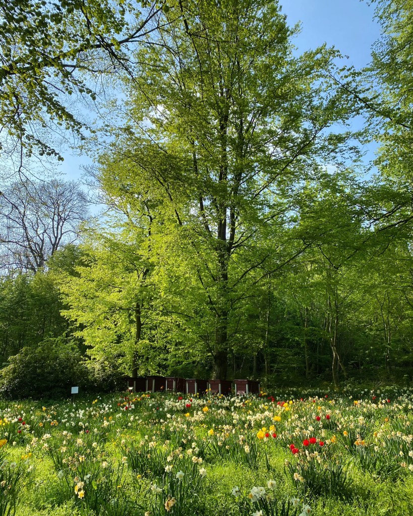 Alla samhällena var i full gång och klarade vintern lätt även om våren var kall och lång, nu hittar dom mycket mat ute och @bosjoklosterslott har dukat bordet med att plantera ett helt fält med vårblommor framför kuporna.