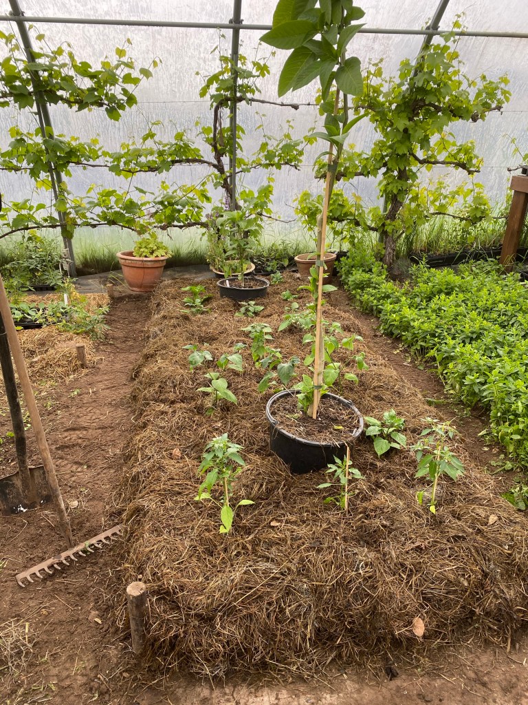 Många bäddar med grönsaker som har stått över vintern är nu färdiga för sina sommargrödor, vårvitlök och persilja ersätts med chili och änglatrumpeter.