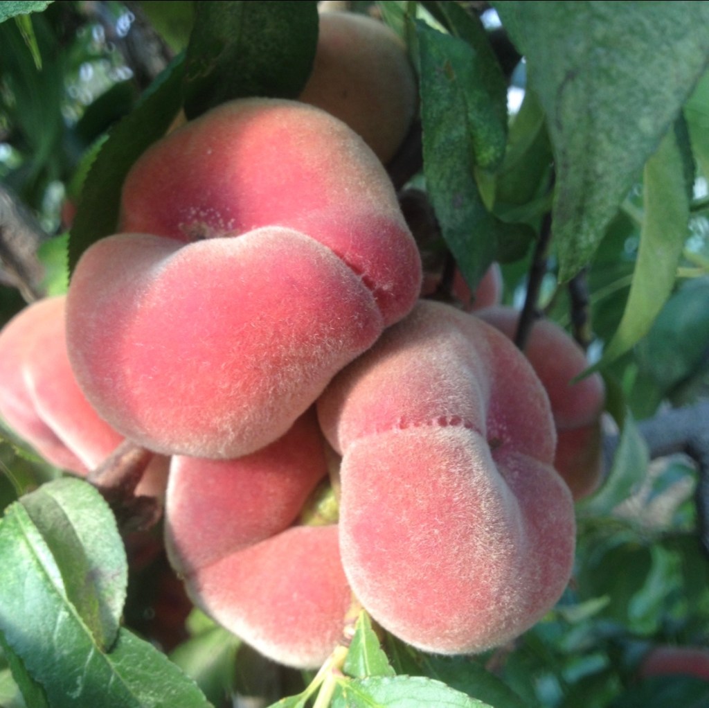 A unusual favorite in our greenhouse is the Doughnut peach, originally from China but exists in more places now.