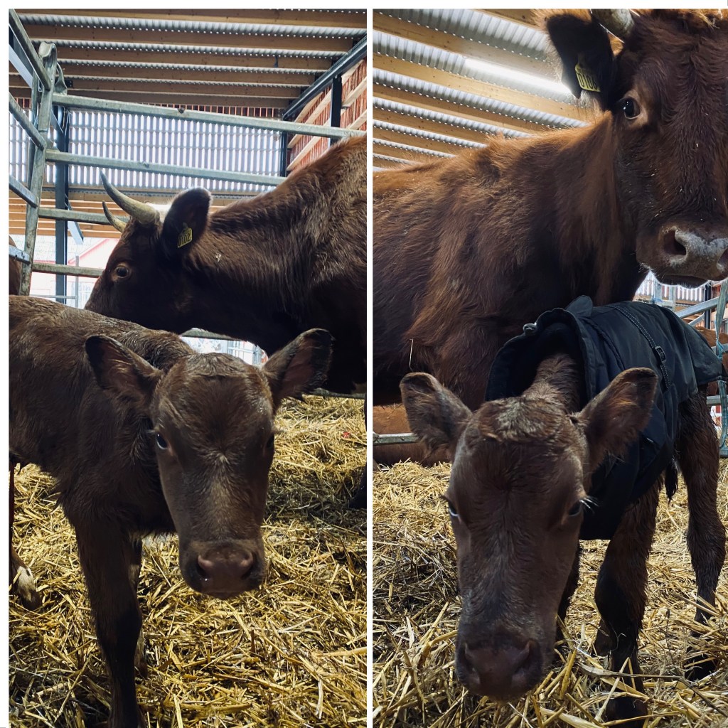Efter några dagar utan kalvar var vi nu igång igen med två nästan tvillingar lika som bär men med två olika mammor och samma pappa.