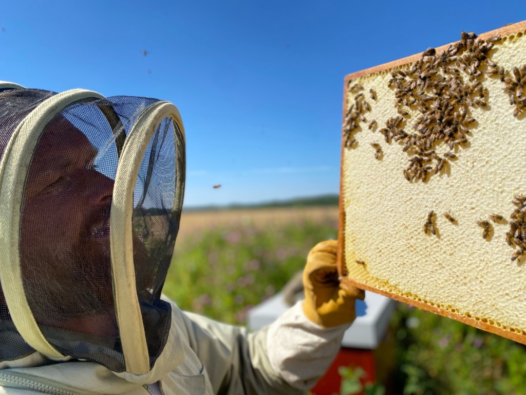 Härligt att få besöka våra bigårdar och hitta många kupor som har gott om honung.