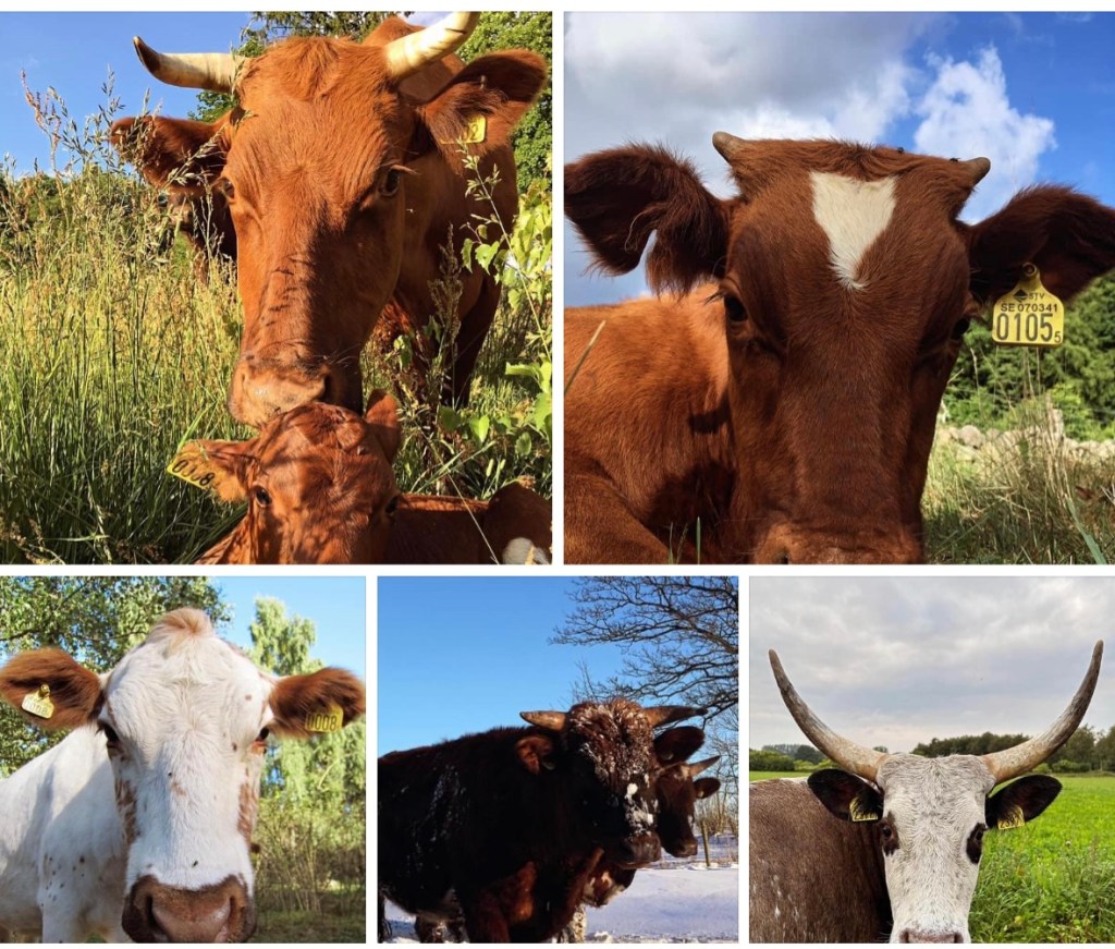 Alla våra kor och tjurar har horn men de föds inte med horn utan de börjar växa efter kalvningen och kan kännas efter några veckor.