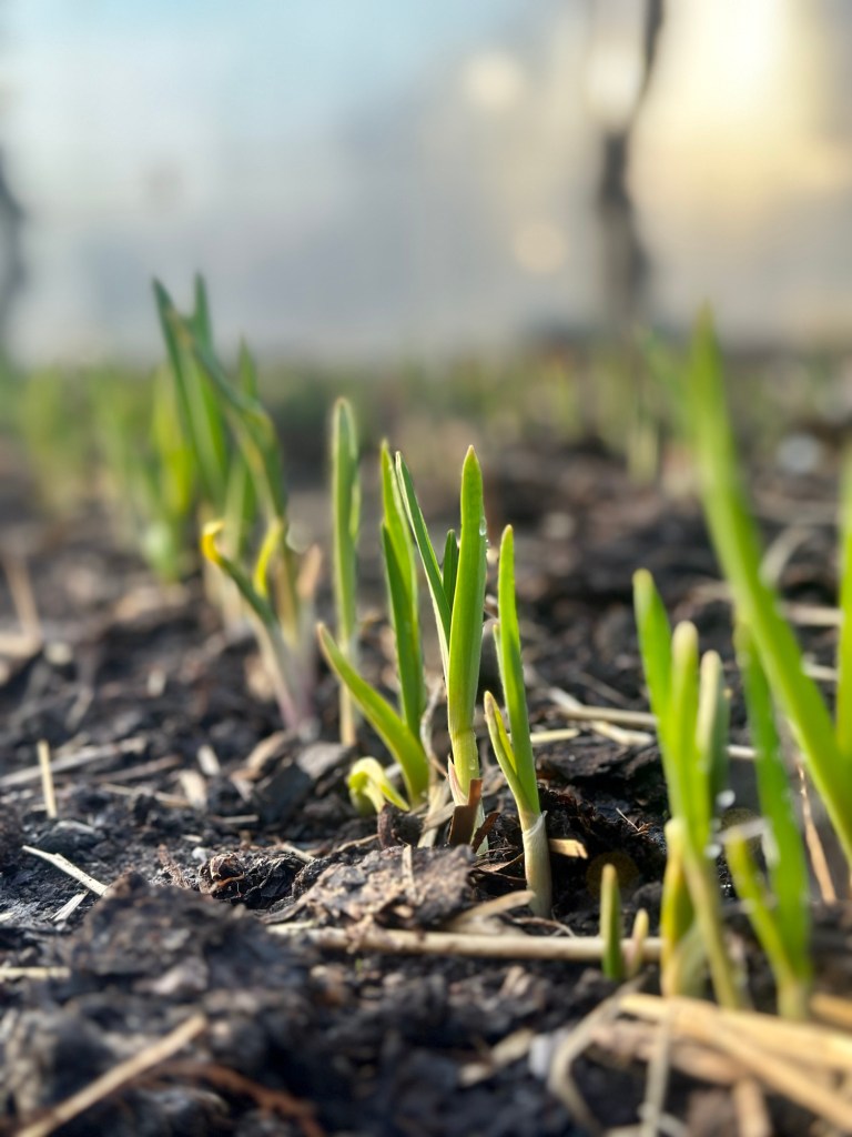 Vitlök gillar en mullig jord som är väl dränerad och är väldigt hungrig speciellt efter svavel så vi gödslar med en stallkompost innan vi planterar och brukar ner den i det översta jordlagret, om det inte är nog tillsätter vi hönsgödsel på våren och brukar ner den direkt för att undvika förluster av kväve.