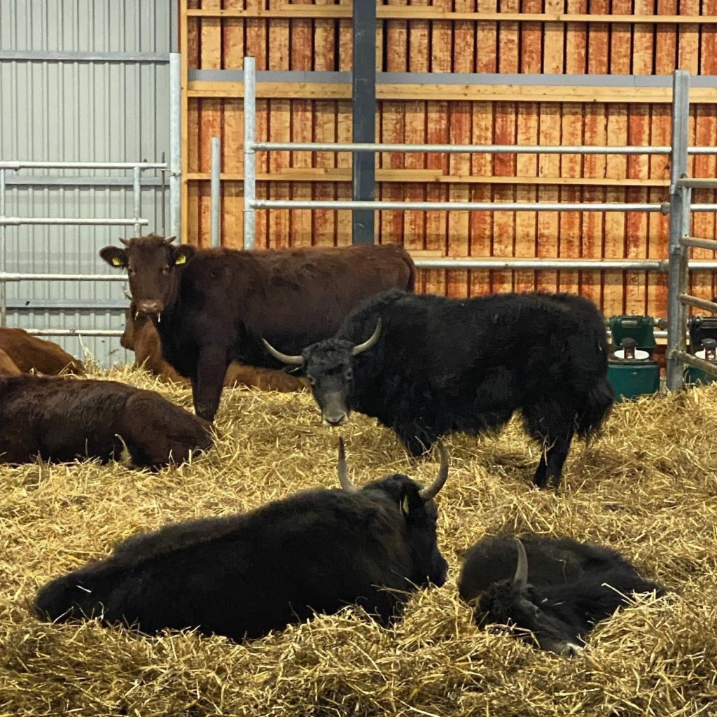Look on our black 2 year old yak standing in front of a 1 year old heifer off our heritage cows that are not a big breed.