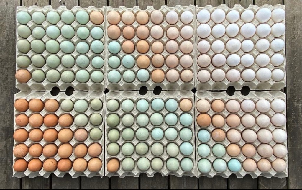 Vi har förmånen att kunna bevara 11 gamla svenska hönsraser och så här ser det ut när vi plockar ägg