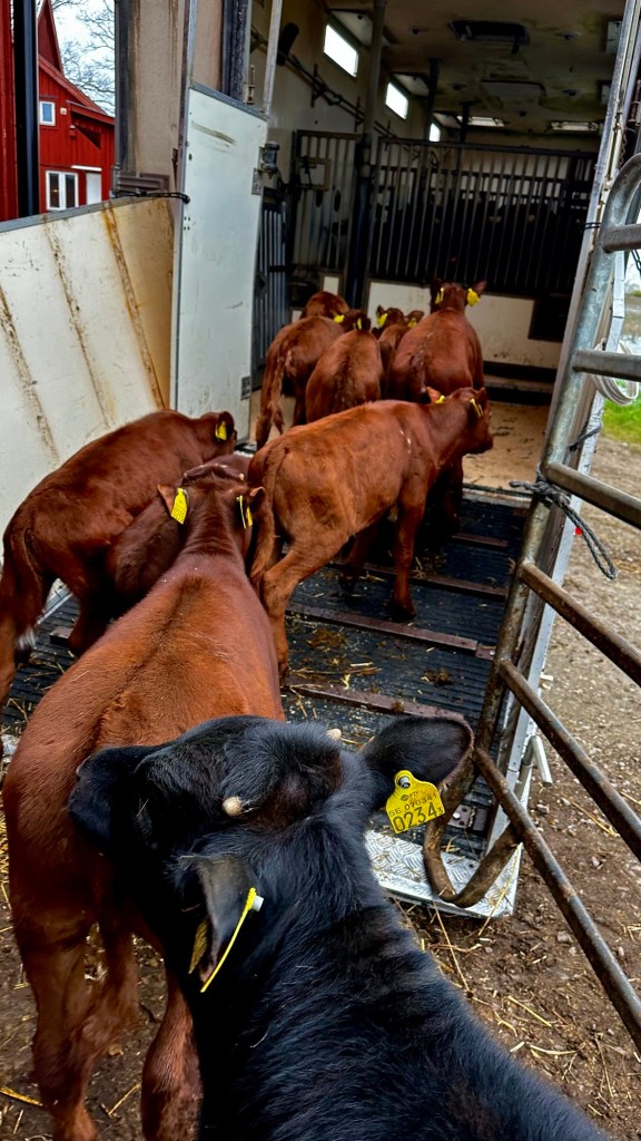 Korna är lastade och sista omgången med kalvar lämnar nu Arken för en skön sommar ute på betet.