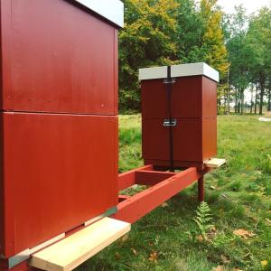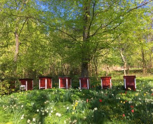 Det är här allt började med vår biodling och där vi nu har några av våra mest intressanta kupor så som vår stockkupa. Gjord från ett ihåligt Alträd får bina här bygga fritt istället för att bygga sina vaxkakor i ramar, det är fascinerade att följa binas arbete och hur de anpassar sina vaxbyggen efter kupans form. Här hittar bina sin nektar från trädgården och det omkringliggande landskapet som både är artrikt och har hög variation av naturtyper.